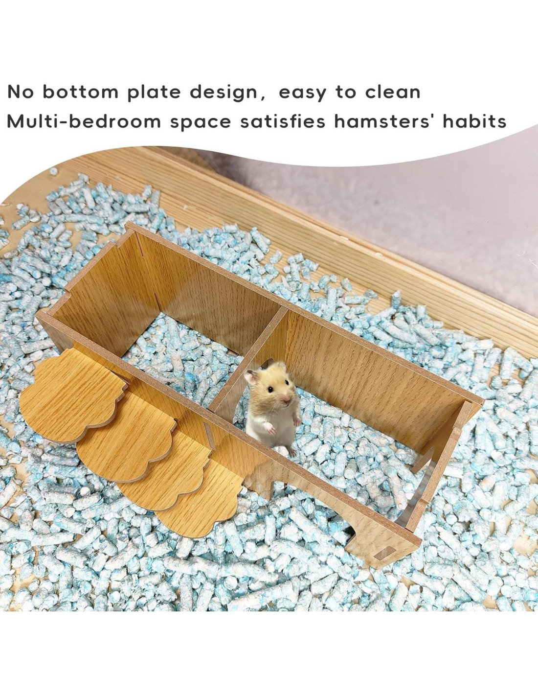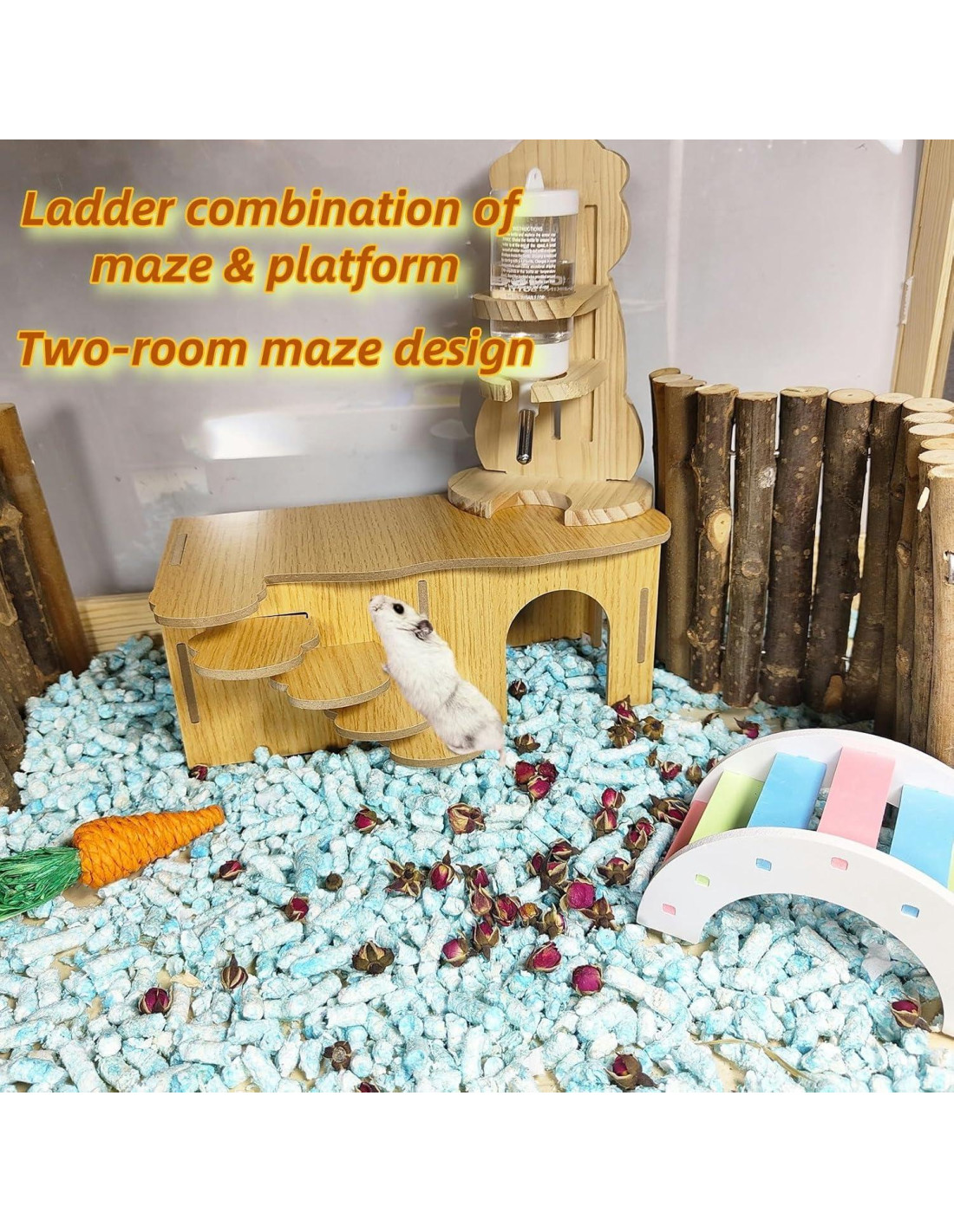- Forma única: Nuestro escondite para hámster con escalera combina laberinto y plataforma, diseño de laberinto de dos habitaciones, para satisfacer la naturaleza de amor por el escape de las mascotas, los hámsters suben por la escalera, pueden jugar y comer en la plataforma, pero también es conveniente para nosotros observarlo, para dar a la mascota un espacio de vida seguro, cómodo y hermoso.