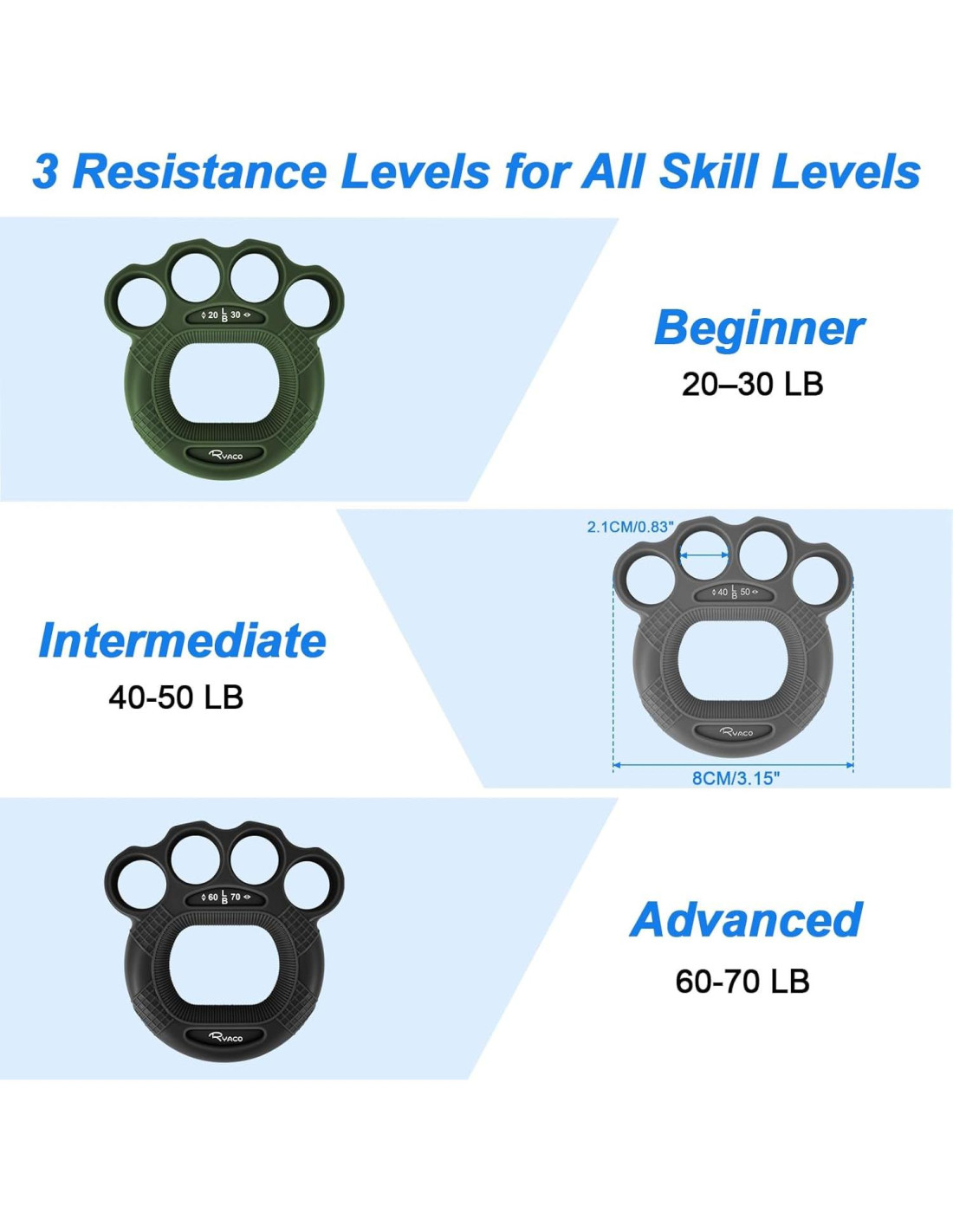 - Entrenador de Agarre Duradero y Flexible: Mejora tu fuerza de mano con nuestros anillos de agarre progresivos, que ofrecen resistencia ajustable desde 10-20LB (4.5-9.1 kg) hasta 50-60LB (22.7-27.2 kg). Cada anillo está hecho de silicona de grado alimenticio premium, asegurando elasticidad y retención de forma duraderas. La superficie texturizada antideslizante proporciona un agarre seguro y cómodo.