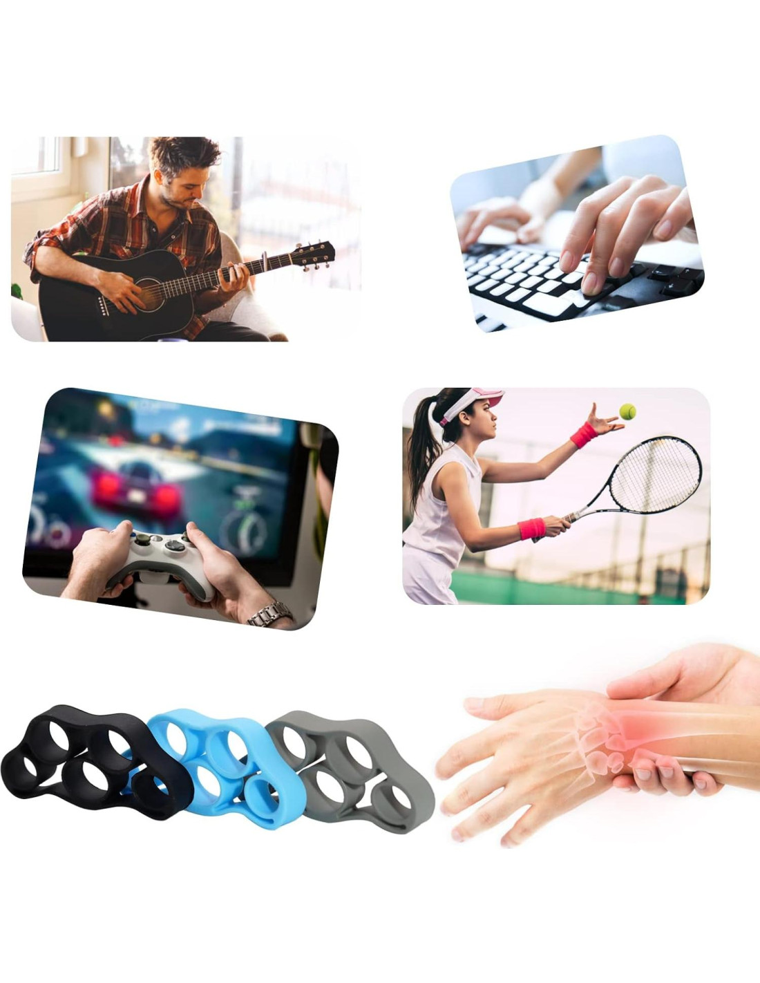 - [Rehabilitación y Prevención] : Excelente para artritis reumatoide, artritis, síndrome del túnel carpiano, tendinitis, codo de tenista y para quienes están en proceso de recuperación de una muñeca fracturada o rota, o cuando escribes, envías mensajes de texto o cualquier otra actividad que use tus músculos de agarre.