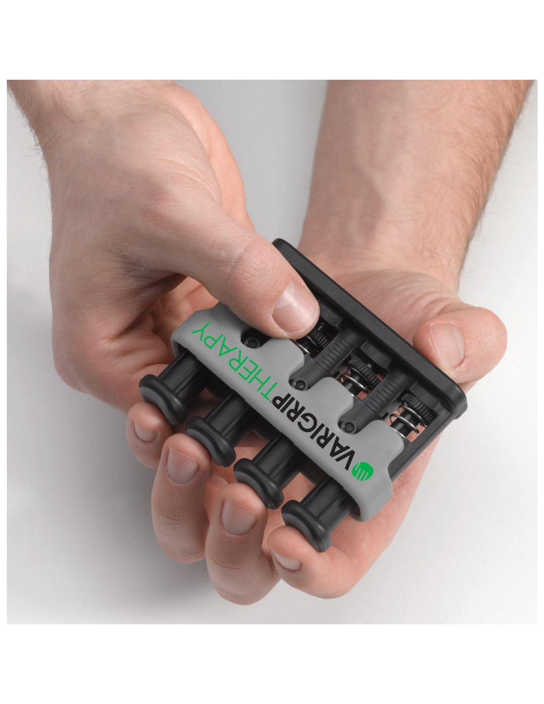 ¡Dos ejercitadores en uno! Solo VariGrip Terapia incluye la capacidad patentada de ajustar la resistencia, proporcionando resistencia personalizada para cada dedo individual, mejorando así la circulación, destreza, resistencia y fuerza de manera más efectiva, y creando una transición más suave de un nivel de resistencia al siguiente. VariGrip Terapia no solo es para dedos y manos, sino también para acondicionar la muñeca y el antebrazo.