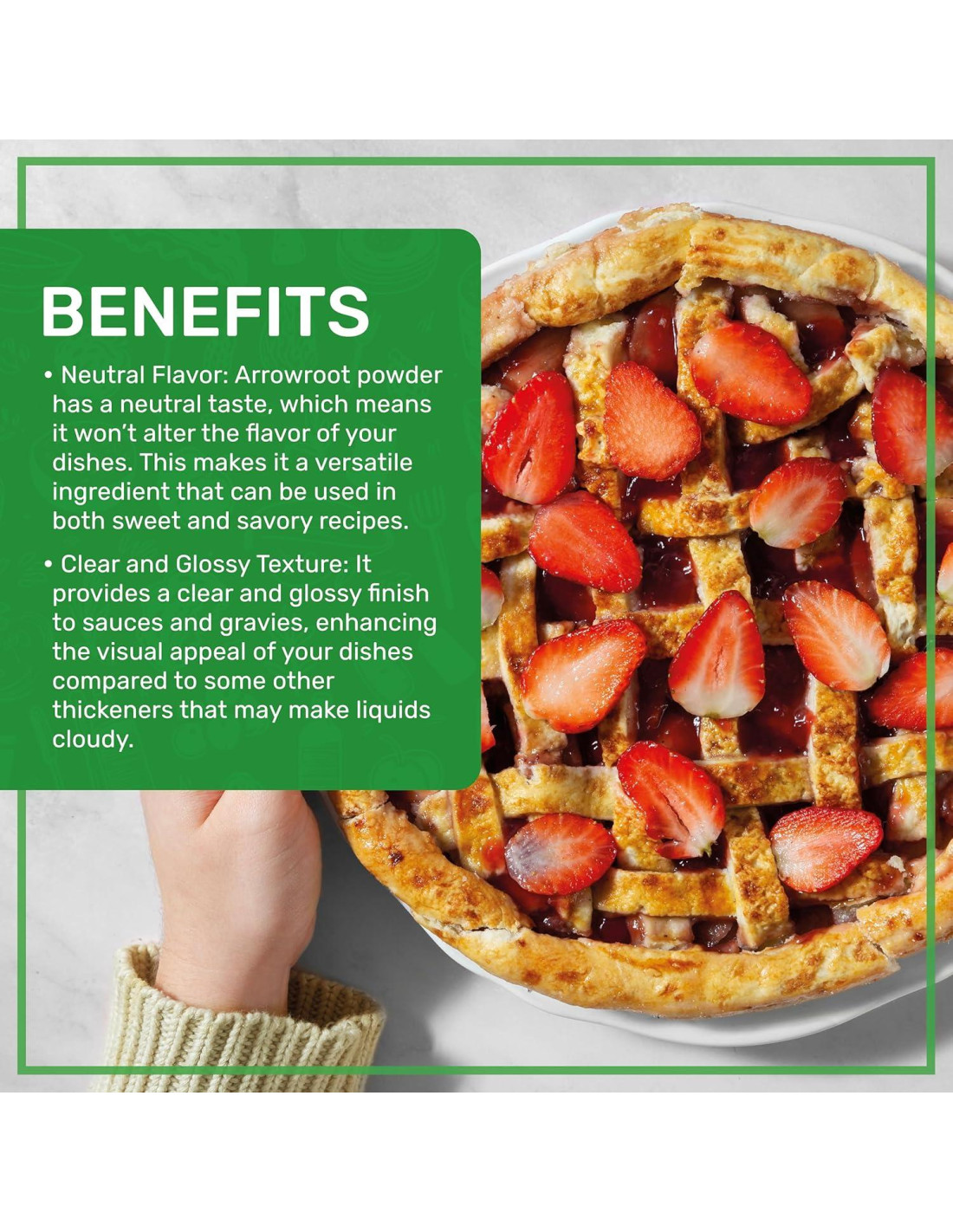 - ¡Muchas aplicaciones! El arrurruz es un sustituto versátil de almidón y harina que es perfecto para mejorar sopas, salsas, salsas, galletas, pasteles, pan, tortillas, pastas o galletas saladas.