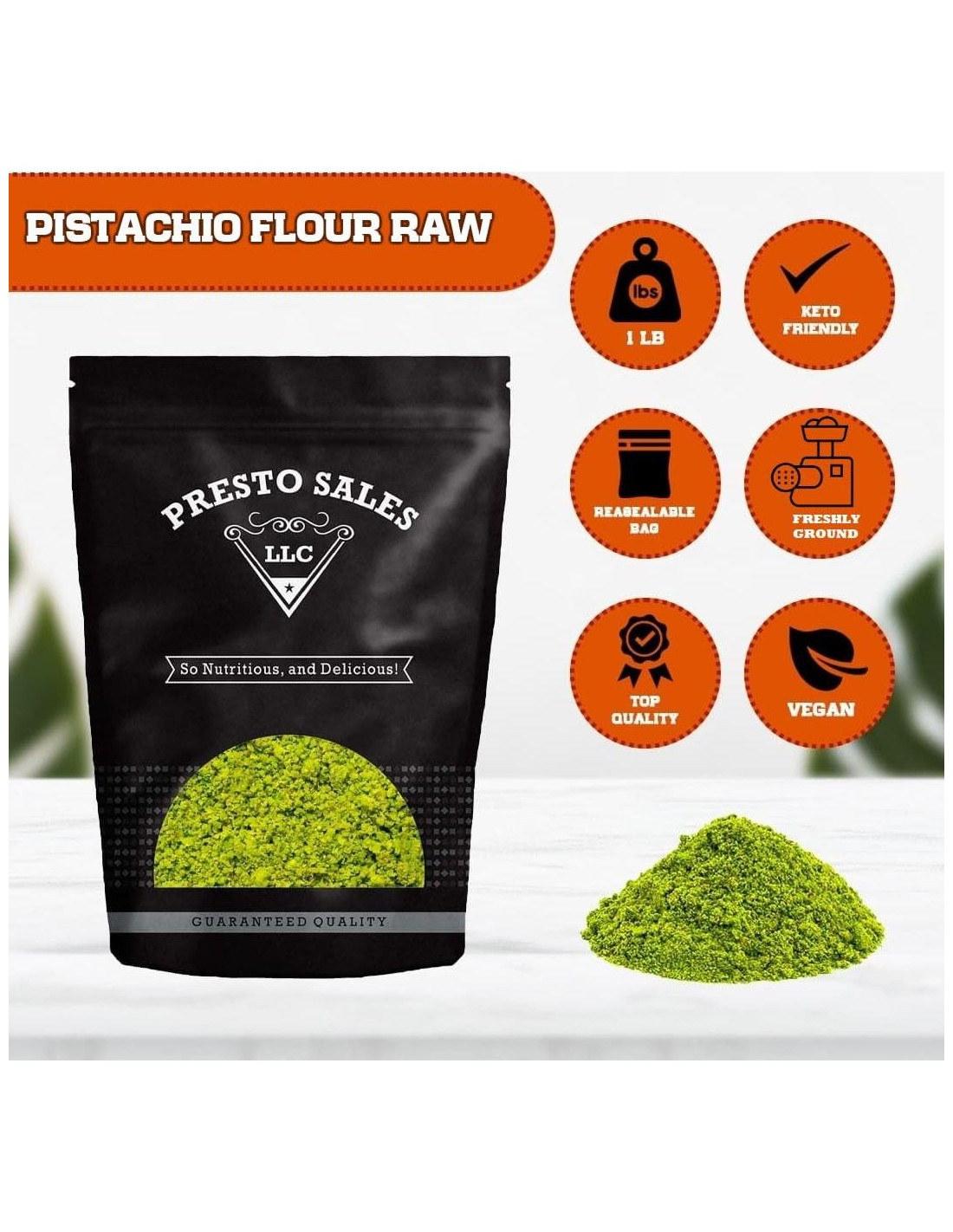 - GLORIOSO Y DELICIOSO: Sabrosos pistachos, procesados tiernamente en una harina sabrosa, deliciosa, sabrosa y excelente. Viene en una conveniente bolsa resellable y siempre fresca. Cada bolsa contiene harina de pistacho fresca, tan dulce y tan sabrosa.