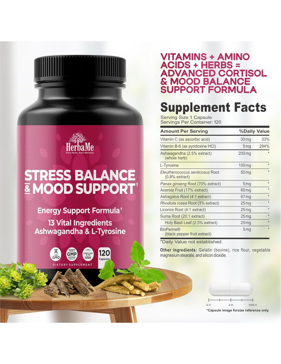 - Mezcla de Apoyo al Estado de Ánimo - Esta fórmula combina 13 ingredientes cuidadosamente seleccionados, incluyendo Ashwagandha, L-Tirosina, Vitamina C, Vitamina B6, Raíz de Suma y Ginseng Panax, para ayudar a promover el equilibrio emocional y apoyar una perspectiva positiva.