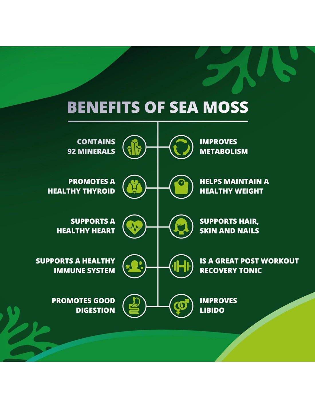 - DESBLOQUEA EL PODER DEL MUSGO MARINO - Nuestras Cápsulas Todo en Uno de Musgo Marino ofrecen una mezcla potente de Musgo Marino combinado con Semilla Negra, Ashwagandha, Cúrcuma, Fucus, Raíz de Bardana y más. Cada cápsula es una fuente de nutrientes diseñada para apoyar tu cuerpo de pies a cabeza.