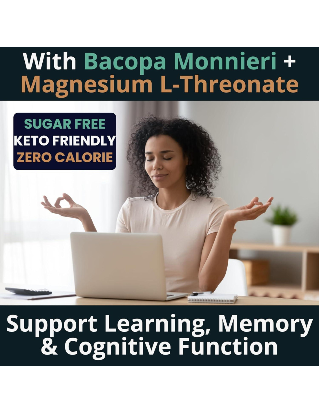 - Cada porción de dos gominolas incluye 350mg Extracto de Bacopa Monnieri, 350mg L-Tirosina (L'Tirosina), 350mg N-Acetil-L-Tirosina, 100mg Magnesio L-Treonato y 100mg Magnesio Glicinato.