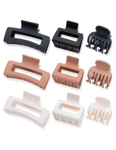 - Variedad de Colores Neutros: Estos clips de garra para cabello vienen en una gama de colores que incluyen crema, marrón oscuro y negro, permitiendo una fácil coordinación con cualquier atuendo. El elegante acabado mate los hace llamativos, perfectos para aquellos que buscan clips de cabello para cabello grueso o clips de cabello mini para cabello más fino.