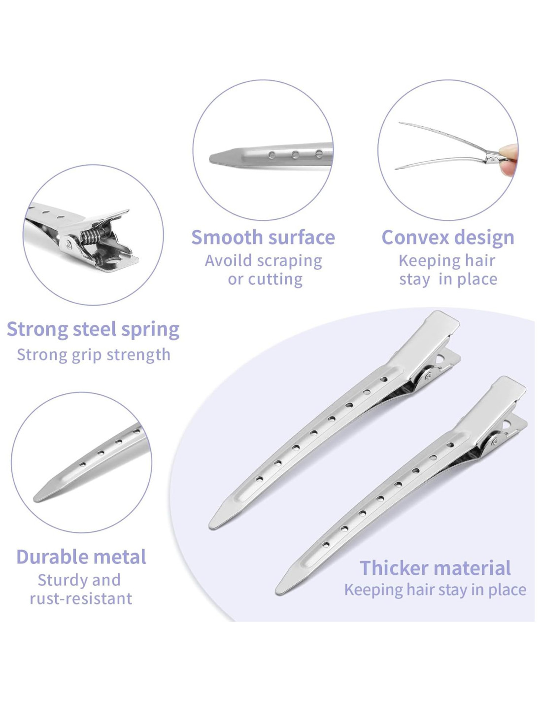 - MULTIUSO: Los clips de pico de pato de metal son ideales para crear varios peinados y asegurar secciones de cabello de manera efectiva. Un imprescindible para estilistas, entusiastas de la belleza y cualquier persona que busque un estilizado organizado y eficiente.