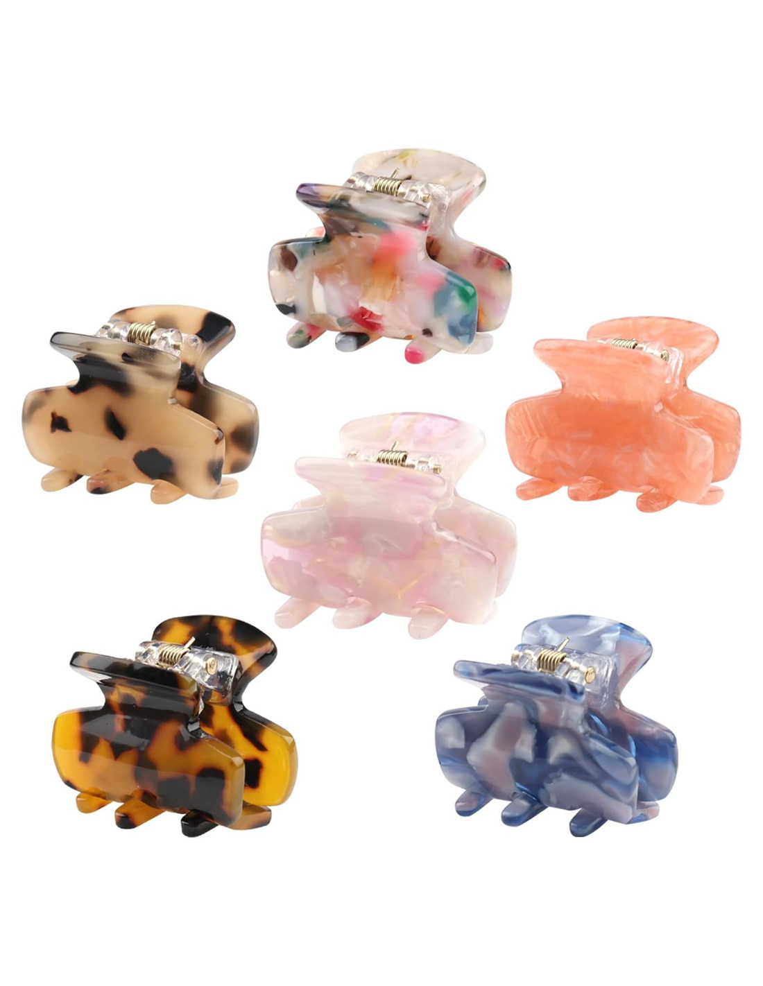 - El paquete incluye: 6 PCS Pequeños Clips de Garra para el Cabello, Barrettes de Plátano de Resina Acrílica, Clips de Mandíbula de Mariposa Francesa de Celuloide, Pinzas de Sujeción de Concha de Tortuga - Accesorios para el Cabello Estilizados de Estampado de Leopardo para Mujeres Niñas, Tamaño Mini.