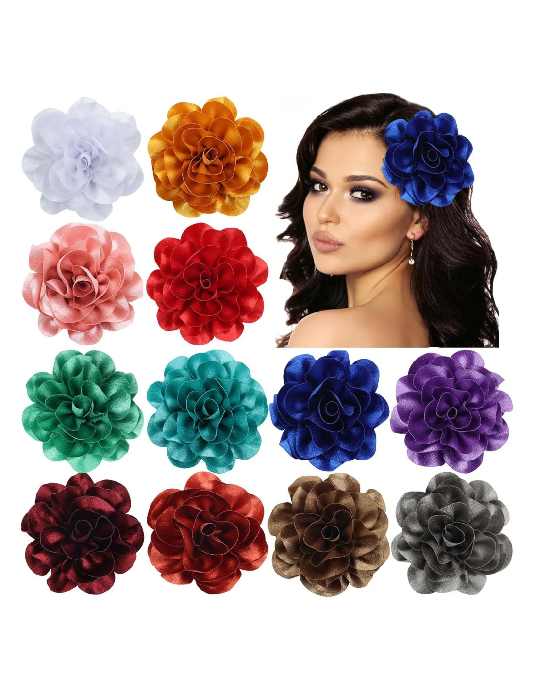 - MATERIAL DE ALTA CALIDAD: Cada flor grande está hecha a mano cuidadosamente de satén premium y luego se adhiere a un clip de pelo de metal de alta calidad, asegurando durabilidad y longevidad. El fuerte clip de metal tipo cocodrilo mantiene el clip en su lugar de manera segura, mientras que la bonita flor de satén añade un toque de elegancia a cualquier peinado.