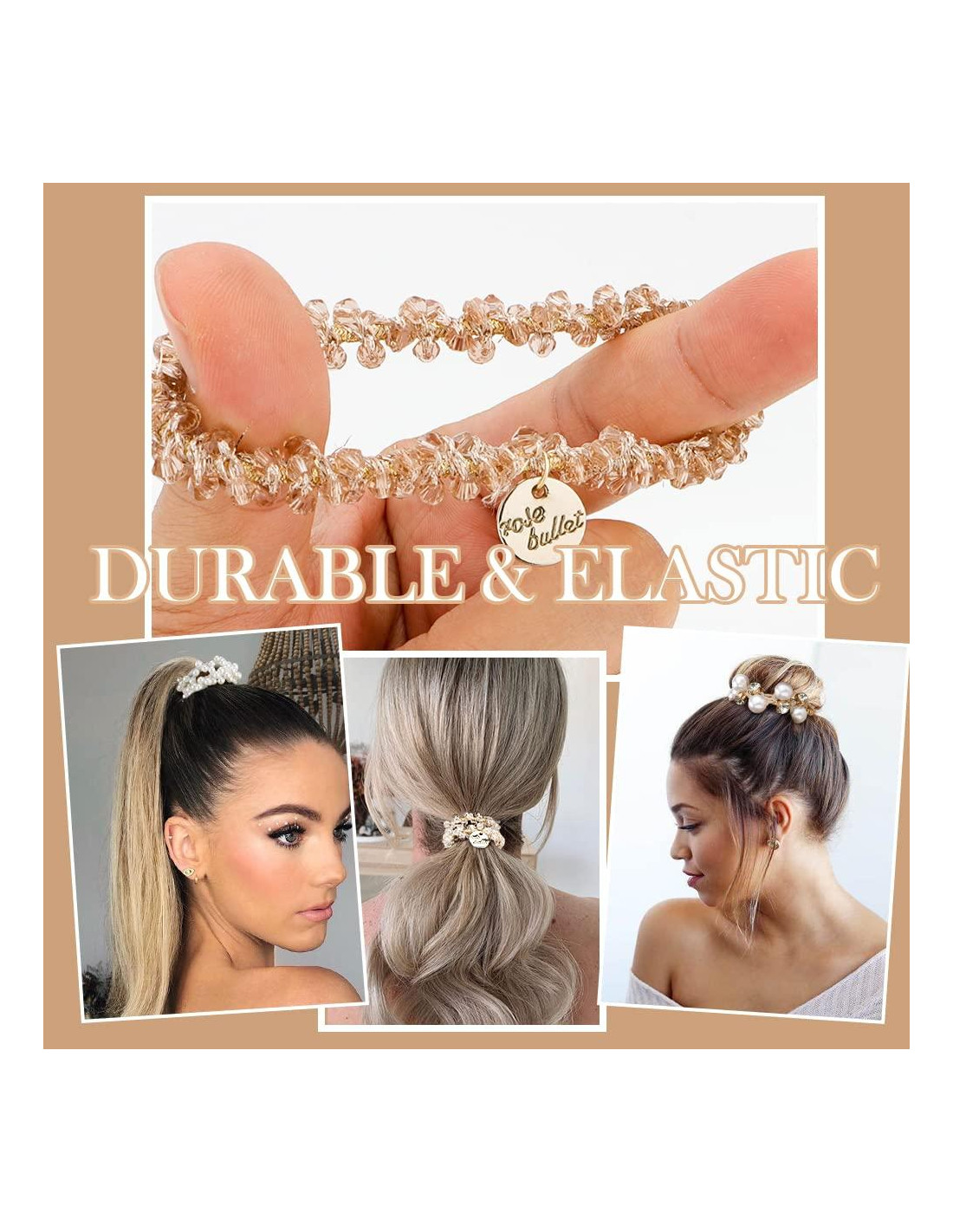 - Calidad Premium - Los sujetadores de coleta están hechos de perlas hechas a mano, cristales y bandas de goma elástica; Resistentes y duraderas, no son fáciles de romper.