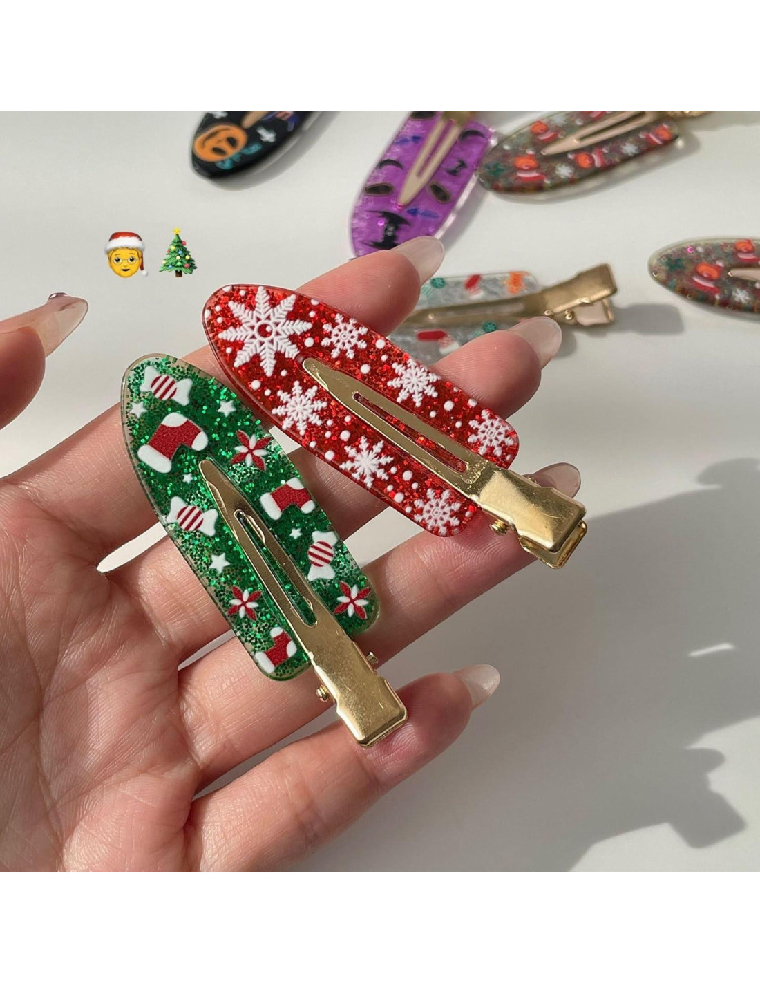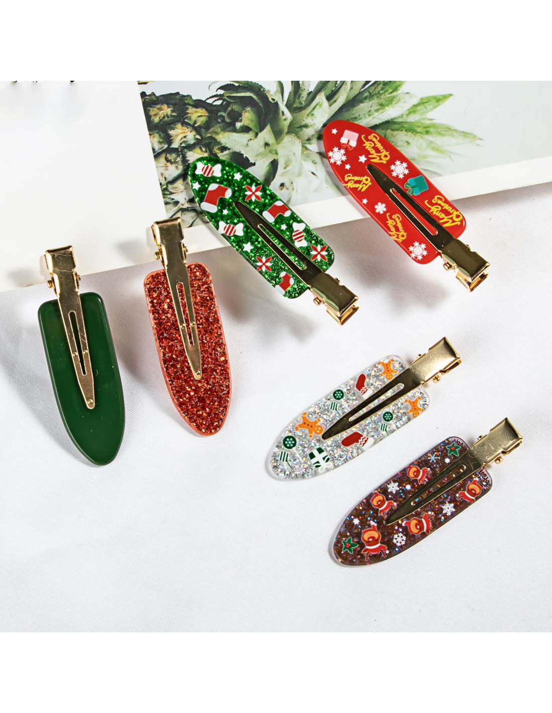 - Amplias Ocasiones - Las características de los clips de cocodrilo con temática navideña se pueden usar en todas las estaciones y especialmente para todas tus festividades navideñas, fiestas, obras de teatro o atuendos de Santacon. Son los accesorios de pelo perfectos para usar en casa, oficina, escuela para añadir un poco de espíritu navideño a tu atuendo diario durante la temporada navideña.