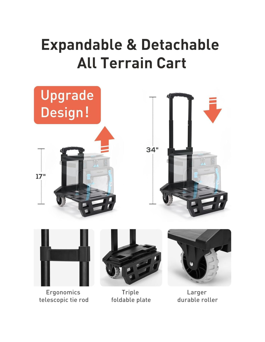 - Característica especial: A prueba de fugas, Mango retráctil, Plegable, Con ruedas, Aislado