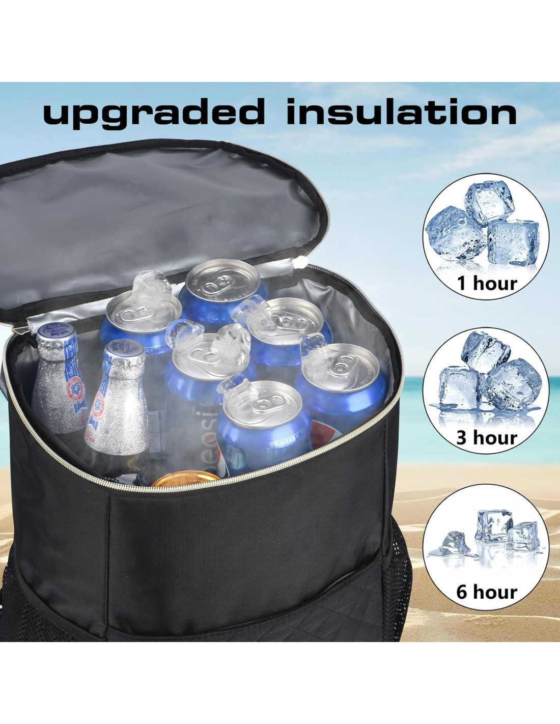 - [Mochila Cooler de Moda y Confiable] Obtén un diseño moderno hecho con materiales compuestos resistentes para una bolsa de hielo estilosa y confiable, excelente para actividades al aire libre.