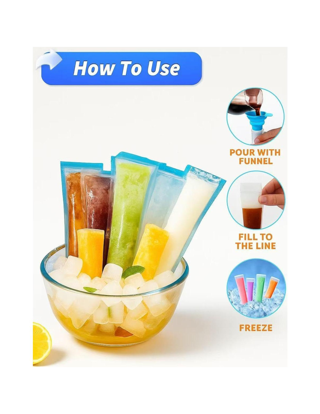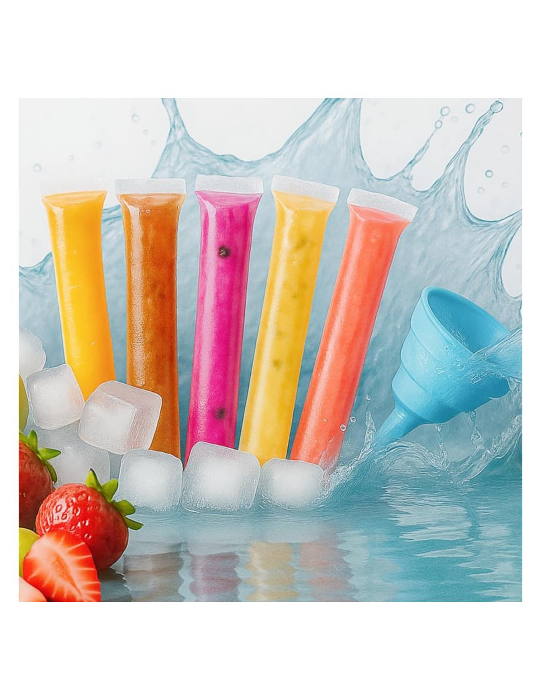 - Fácil de llenar y usar: El conjunto de bolsas para helados incluye un embudo para un llenado conveniente. Simplemente abre el sello de cremallera, inserta el embudo, vierte el líquido hasta la línea de llenado, sella, congela y disfruta.