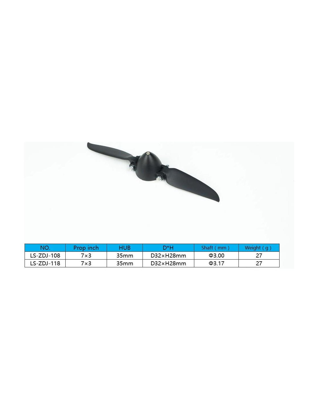 - Prop: 7x7, Diámetro del eje del motor: 3.0, HUB: 35MM, Tamaño del spinner: D32xH28mm.