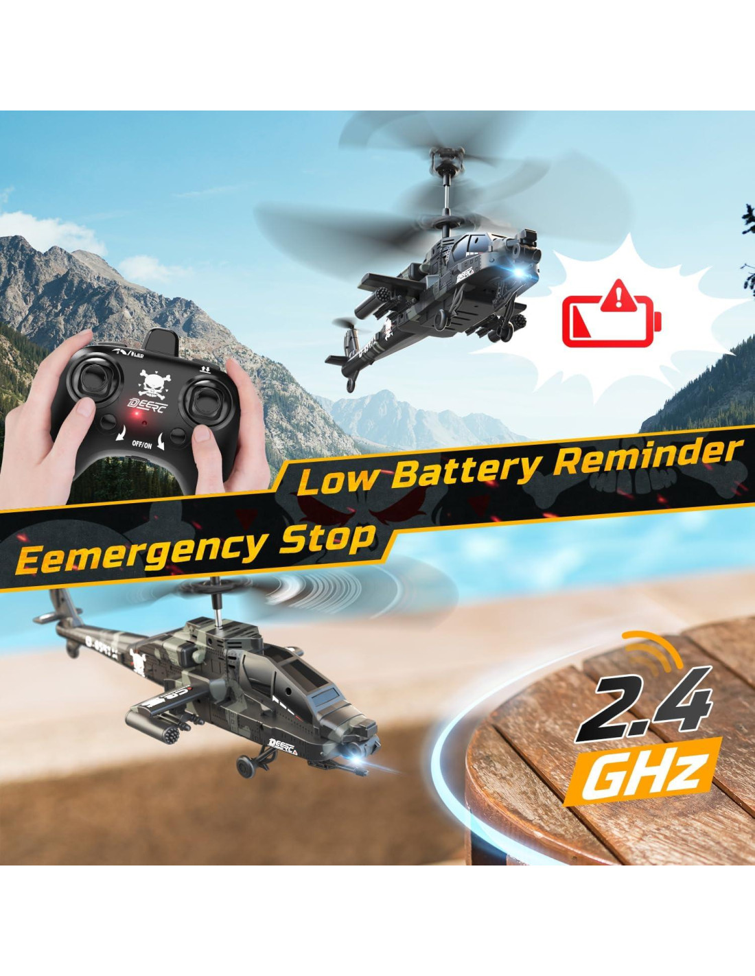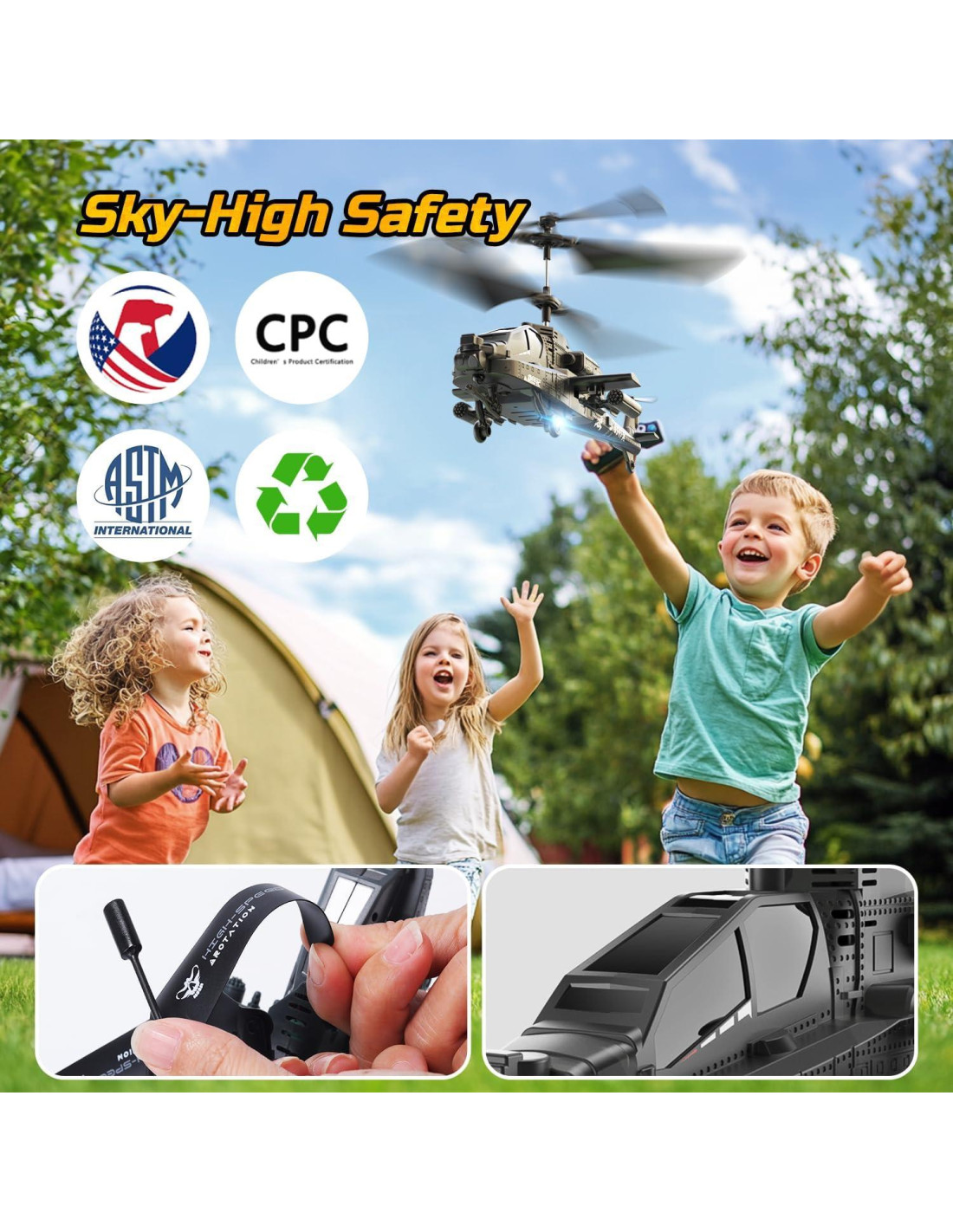- Diseño Militar Apache Realista Experimente la emoción de volar un helicóptero RC de estilo militar. Con impresión detallada de calaveras y características realistas, este helicóptero es un juguete perfecto para niños de 8 a 12 años y adultos por igual. Es más que solo diversión, es una forma genial de despertar el interés en la aviación y la mecánica.