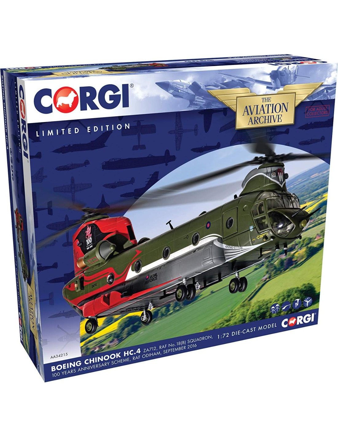 La inigualable versatilidad y capacidad de carga del helicóptero Boeing Chinook ha asegurado que esta poderosa máquina de doble rotor y gran capacidad de elevación sea ahora una de las aeronaves más famosas en ver servicio en la Real Fuerza Aérea después de la guerra. Igualmente en casa en los campos de batalla de Oriente Medio como lo está al soltar sacos de lastre para prevenir la ruptura de una represa un poco más cerca de casa, el Chinook ha estado en servicio en la RAF desde 1980, con la última variante de esta magnífica máquina mejorando aún más su ya legendaria flexibilidad operativa. Además de ser una de las aeronaves más importantes actualmente en servicio, el Chinook es un consumado intérprete en exhibiciones aéreas y un verdadero favorito del público donde quiera que se presente, con el equipo de exhibición de Chinook de la RAF teniendo el privilegio de demostrar el poder y la maniobrabilidad de la aeronave a decenas de miles de personas cada verano. Manteniendo su estado completamente operativo en todo momento, el equipo debe equilibrar los requisitos normales de entrenamiento con la práctica de su dinámica rutina de exhibición y, aunque un Chinook está programado para participar en una exhibición aérea cerca de usted, podría ser llamado a una misión en un momento dado. Si se presenta, no hay nada como la experiencia de ver a este enorme helicóptero ser lanzado por el cielo, con el icónico 'golpe de palas' de un Chinook siendo un destacado de la exhibición aérea. Durante el verano de 2016, nada menos que tres de los helicópteros Chinook de la RAF recibieron atractivos esquemas especiales por su centenario, para conmemorar los aniversarios individuales de sus escuadrones padres. El primero de los tres aviones en salir del taller de pintura fue el ZA712 del Escuadrón No.18(B) en abril de 2015, resplandeciente en su atractivo esquema rojo y negro, que incluía una gran amapola en su alojamiento del rotor delantero. Originalmente formado en RAF Northolt en 1915, el escuadrón tiene una rica herencia de servicio, que incluye reclamar más de 200 aeronaves enemigas destruidas al final de la Gran Guerra y llevar a cabo la operación para soltar una pierna artificial de reemplazo para el famoso piloto de la RAF Douglas Bader, tras su captura en el verano de 1941. Durante más de 55 años como unidad de helicópteros, el Escuadrón No.18 proporcionó famosamente el único apoyo Chinook durante la Guerra de las Malvinas, ya que el ZA718 'Bravo November' fue el único de los cuatro de estos poderosos helicópteros que sobrevivió al ataque de misiles Exocet argentino en el buque de contenedores Atlantic Conveyor, requisado por el Ministerio de Defensa en apoyo del conflicto. Conmemorando el centenario del escuadrón, el Chinook HC4 ZA718 lució estas distintivas marcas durante una sesión de fotos oficial de alto perfil, presentando los otros dos Chinooks del centenario y también realizó una serie de exhibiciones durante la temporada de exhibiciones aéreas de 2015, para deleite de los entusiastas del Reino Unido.