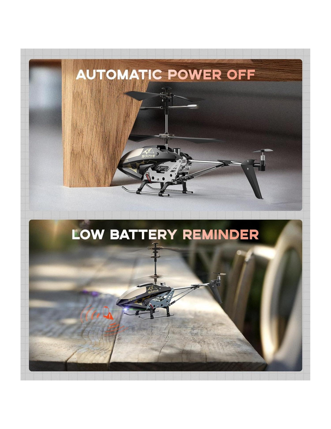 - Sistema de Doble Protección La cubierta del fuselaje de ABS flexible está acolchada para hacer que el helicóptero remoto sea más duradero y resistente a los vuelos; el fuselaje está hecho de aleación para prevenir daños por caídas, permitiéndote operar el mini helicóptero sin preocupaciones.