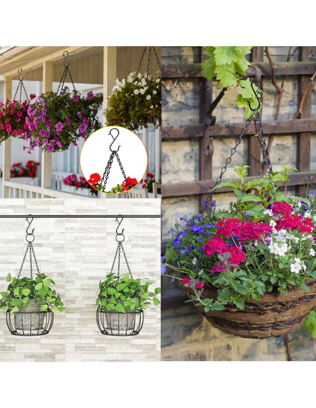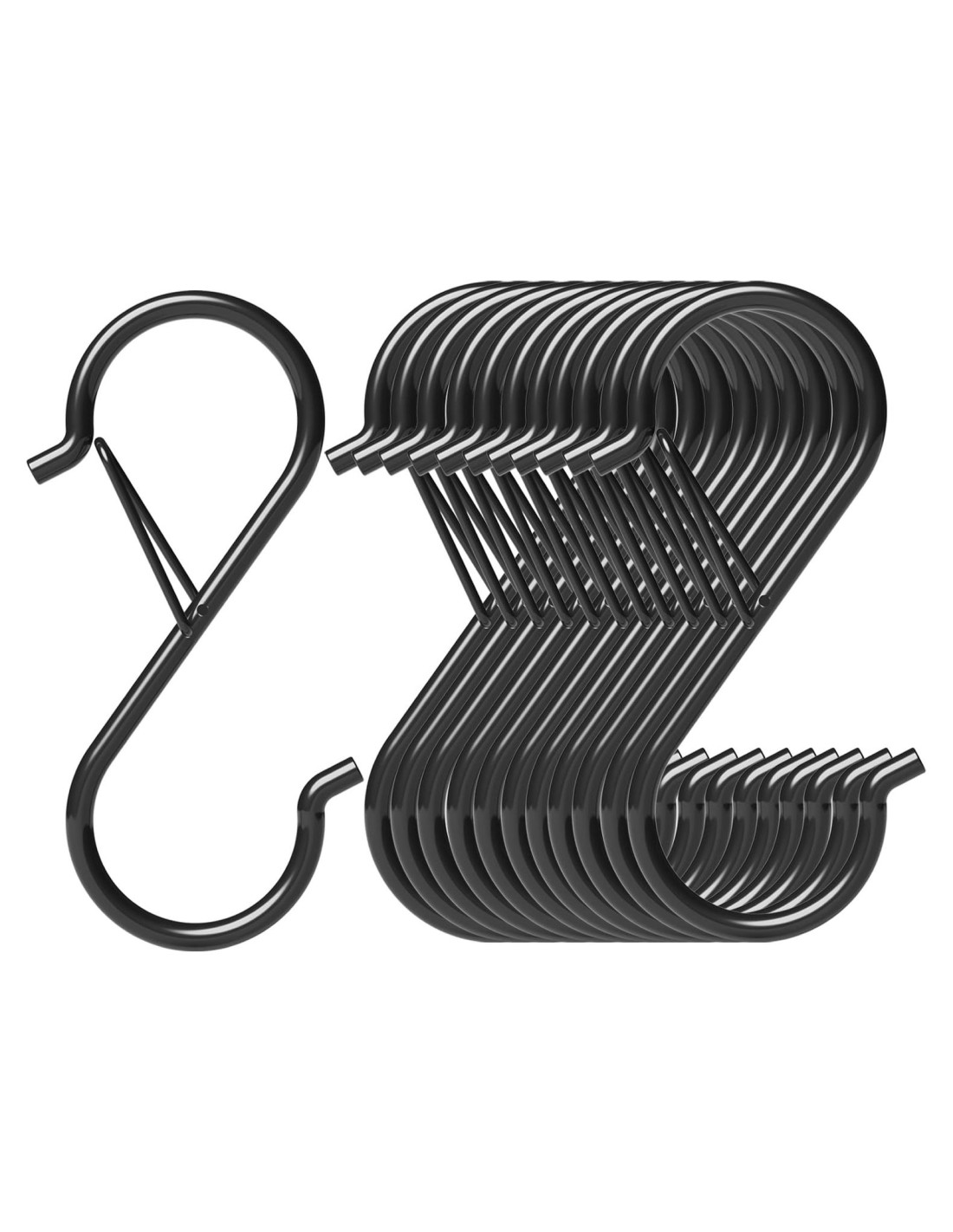 - Paquete de 12: Recibirás 12 Ganchos en S Negros y Resistentes con Hebillas de Seguridad, ideales para ahorrar espacio en casa/oficina/garaje/organizar y colgar plantas, decoraciones de Halloween, luces de Navidad y luces de patio.