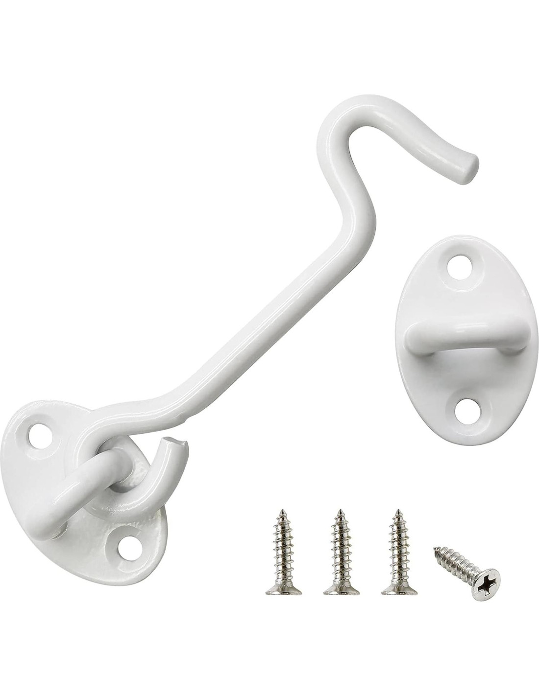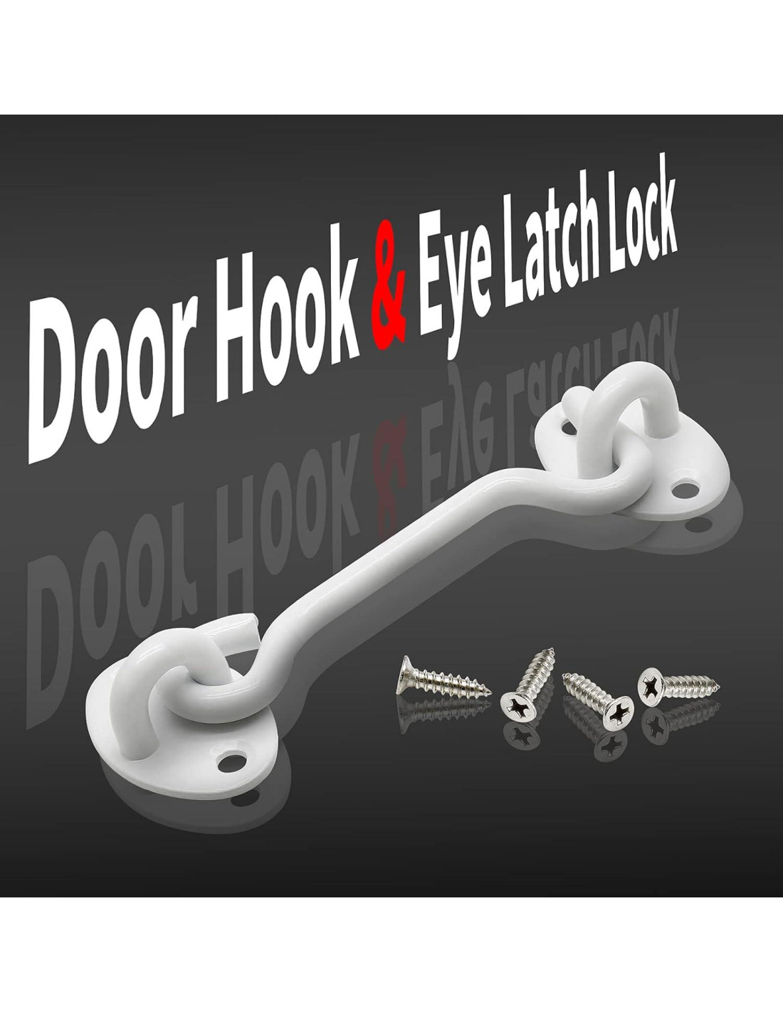 - Contenido del Paquete: 2 piezas de Gancho y Ojo de Puerta de Granero de 4 Pulgadas con Tornillos. Hecho de acero inoxidable sólido engrosado y recubierto con recubrimiento en polvo blanco, tiene una mayor durabilidad y resistencia a la corrosión.