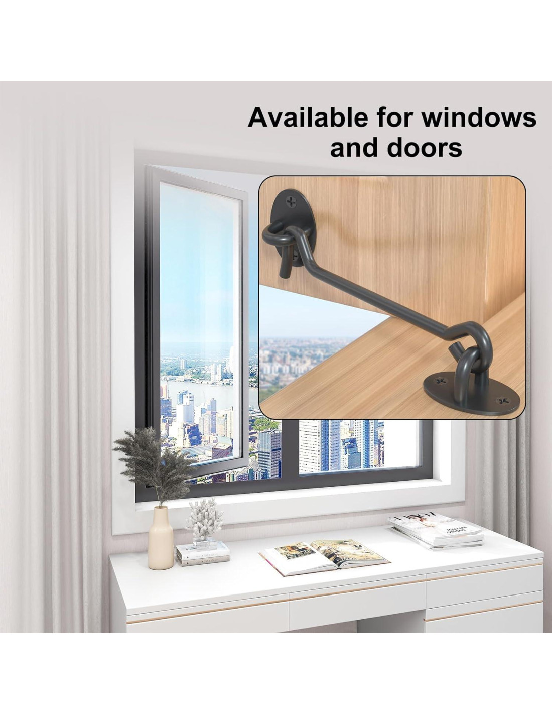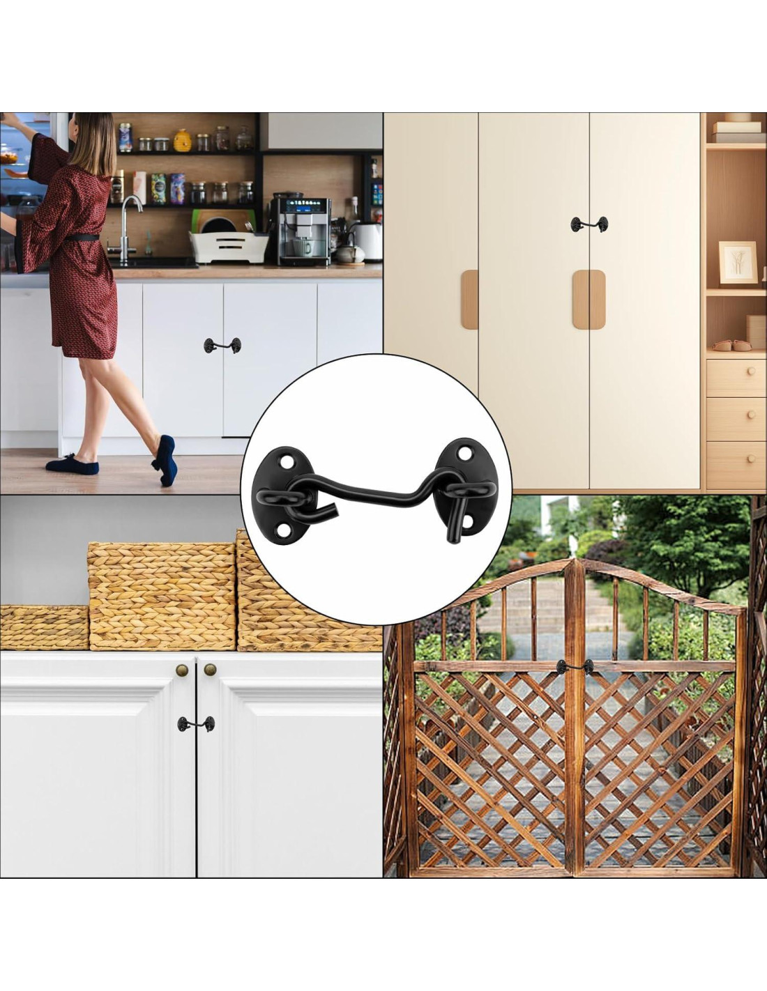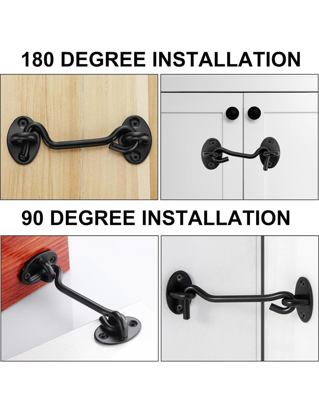 - El kit de herrajes para puerta de granero incluye 2 ganchos y ojos y 8 tornillos. El cierre de gancho y ojo se puede usar para la mayoría de las puertas o ventanas, como puerta de cabaña, puerta corrediza, cercas de madera, garajes, persianas, armarios, etc.