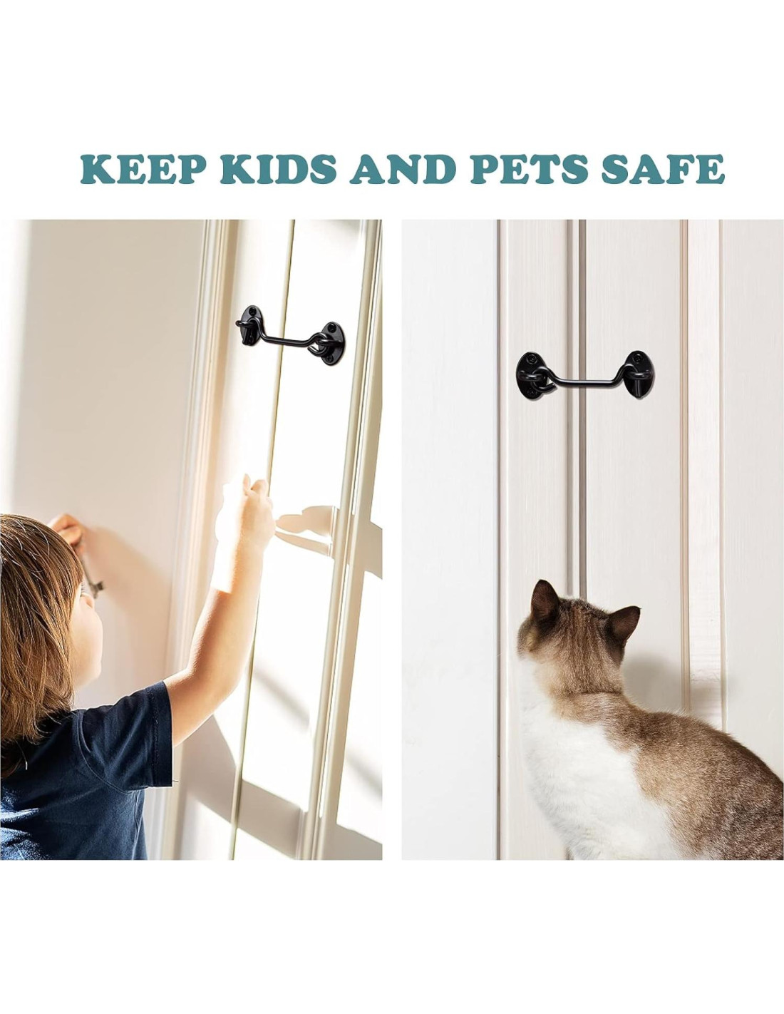- Fácil de instalar: Diseñado con una simple construcción de gancho y cerradura, nuestro pestillo ocular también viene con tornillos para tu conveniencia. Un paso para abrir y un paso para cerrar, nuestro pestillo ocular para puerta estará en servicio en poco tiempo para proporcionar seguridad.