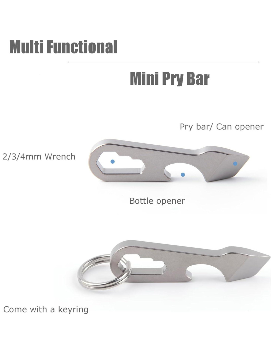 - Ultra Ligera: hecha de material de aleación de titanio, solo 4.2g, tamaño compacto mini, palanca multiherramienta EDC de llavero 4 en 1.