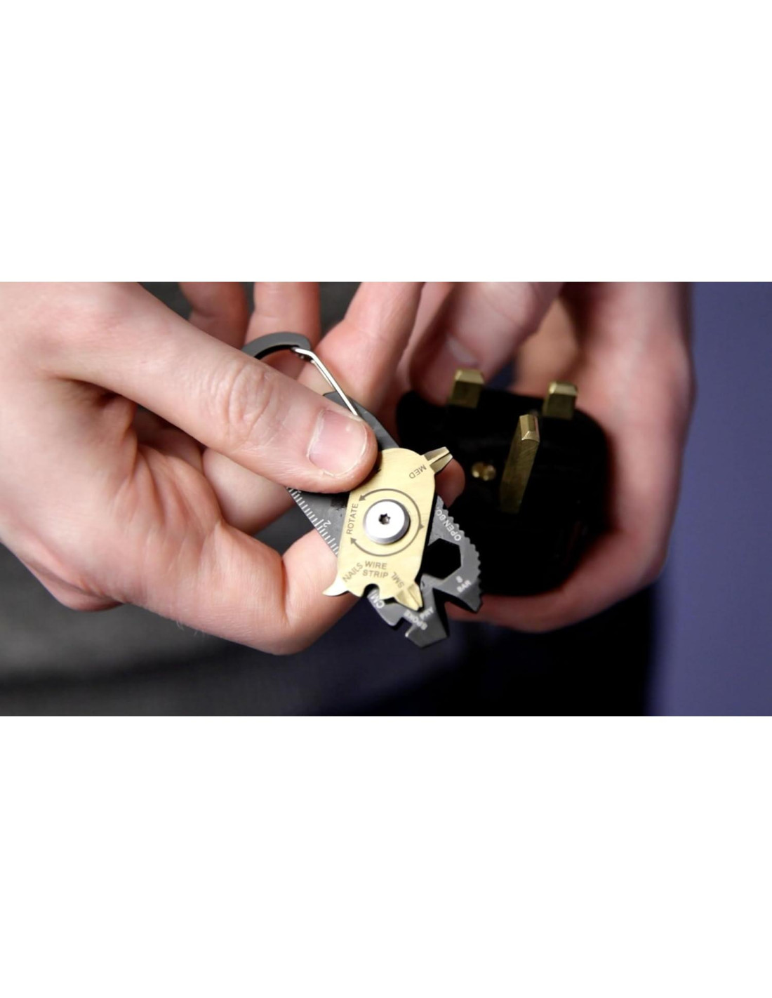 La herramienta FIXR presenta una solución fácil y portátil para todas tus herramientas diarias. Equipado con 20 herramientas diferentes combinadas en 1 multi-herramienta. Estas herramientas incluyen un clip de liberación rápida, abridor de botellas, hoja de corte, palanca, pelacables, limpiador de clavos, abridor de cajas, destornillador plano grande, destornillador plano mediano, destornillador para gafas, destornillador Phillips mediano, destornillador Phillips pequeño, llave de radios de bicicleta, regla de medición, llave de 1/4" (6.35 mm), llave de 5/6" (7.94 mm), llave de 3/8" (9.53 mm), llave de 1/2" (12.7 mm) y llave de 9/16" (14.29 mm). Diseñado con acero inoxidable negro de grado 420 para un aspecto elegante y equipado con un disco giratorio chapado en oro que permite que las herramientas estén expuestas mientras se utilizan, por lo que nunca están en el camino cuando no las necesitas.