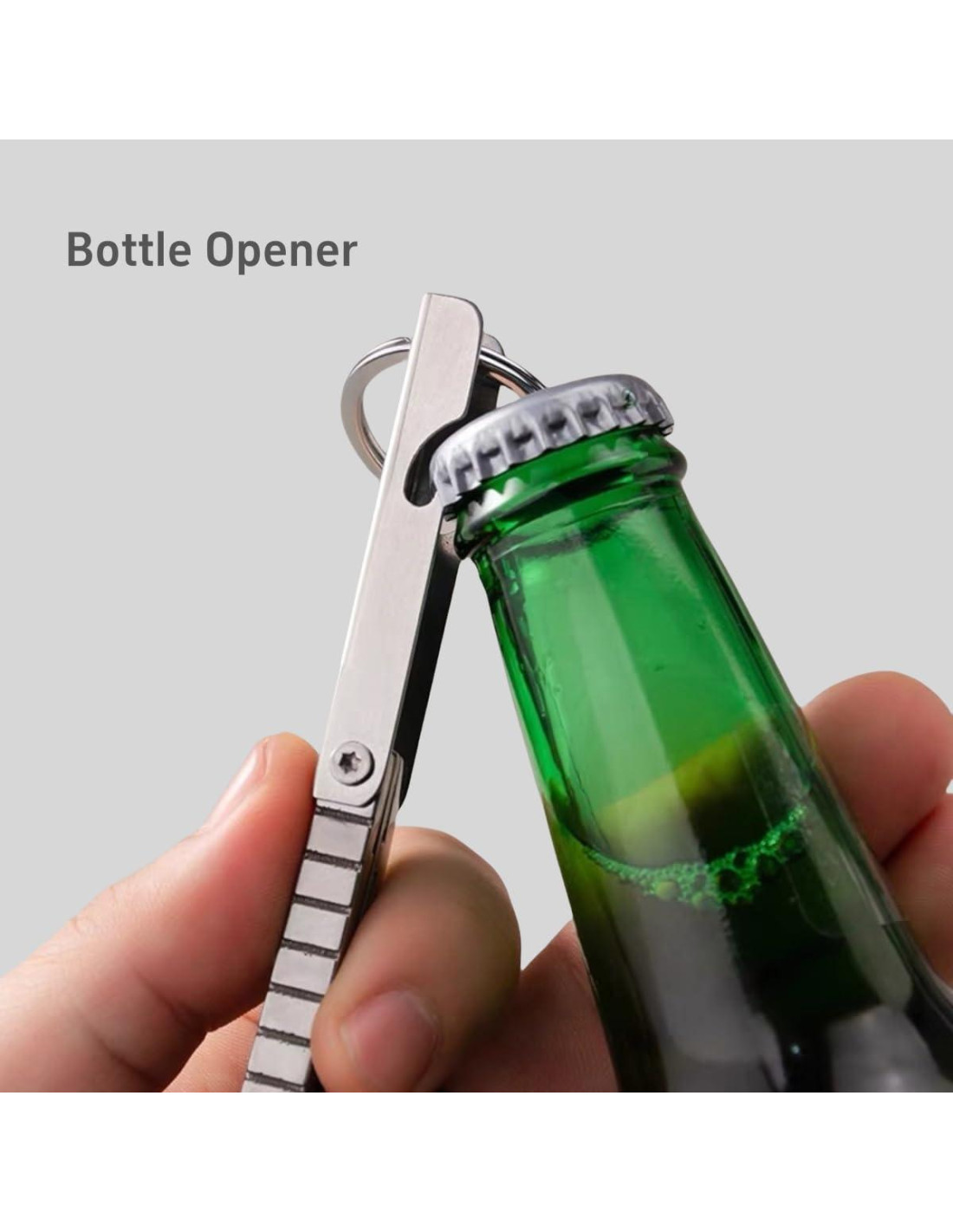 Este llavero abridor de botellas tiene 11 funciones y es ampliamente utilizado. Su tamaño compacto y peso ligero lo hacen fácil de llevar a diario. El diseño multifuncional incluye un práctico abridor de botellas, que también puede servir como soporte para una fácil visualización de teléfonos móviles, un pin preciso para tarjeta SIM, un cuchillo de uñas para una fácil limpieza y una lima de uñas para reparaciones rápidas. También puedes encontrar cuchillas planas y destornilladores Torx adecuados para diversas necesidades de reparación, un pequeño cuchillo conveniente para abrir paquetes y una regla de pulgadas (2.54 cm) para mediciones rápidas. El socket hexagonal integrado añade practicidad adicional a las tareas de fijación comunes. Esta herramienta multifuncional es perfecta para entusiastas del bricolaje, viajeros o cualquier persona que valore la preparación y puede conectarse fácilmente a tus llaves, lista para actuar en cualquier momento. Su ingenioso diseño plegable mantiene todas las herramientas seguras cuando no están en uso, mientras mantiene una apariencia amigable para el bolsillo. Ya sea que estés abriendo empaques, ajustando dispositivos electrónicos o disfrutando de bebidas, esta solución integrada está al alcance de tu mano. También es un pequeño gadget muy adecuado para hombres.
