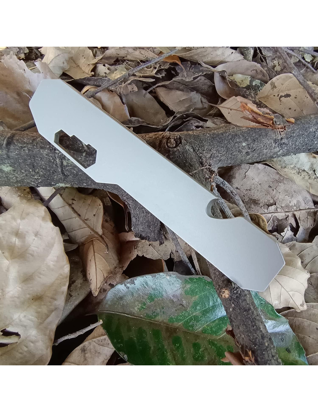 - Material: Titanio. Función: Llave M3 M4 M5 M6, abridor de botellas, palanca.