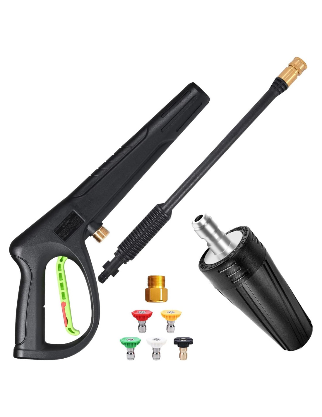 - [Paquete y Servicio] El paquete incluye 1* pistola de lavadora a presión, 1* adaptador de M22-14mm a M22-15, 5* boquillas de lavadora a presión. Si necesitas ayuda con esta manguera de lavadora a presión, no dudes en enviarnos un mensaje en cualquier momento, estamos en línea 7x24 listos para un servicio profesional.