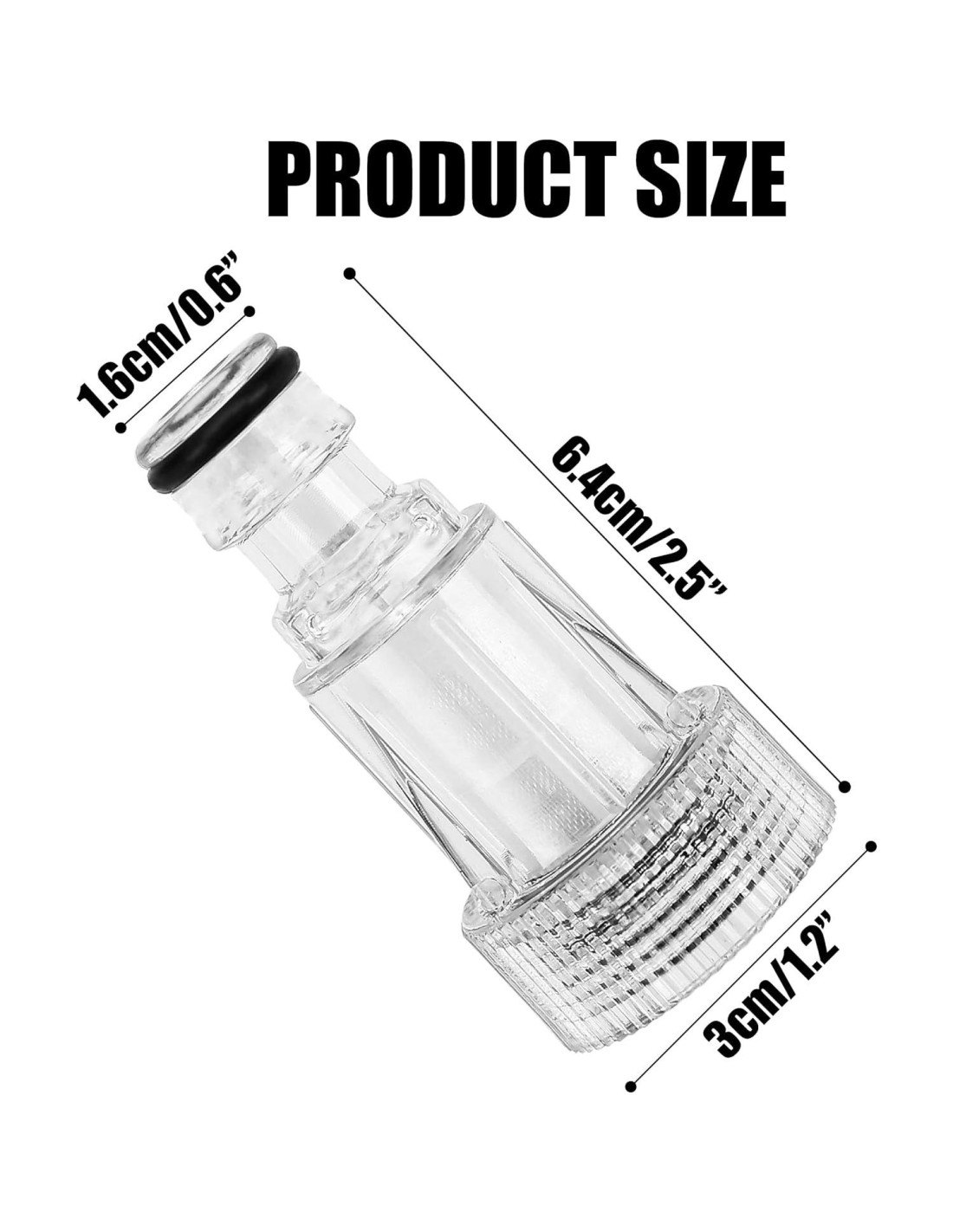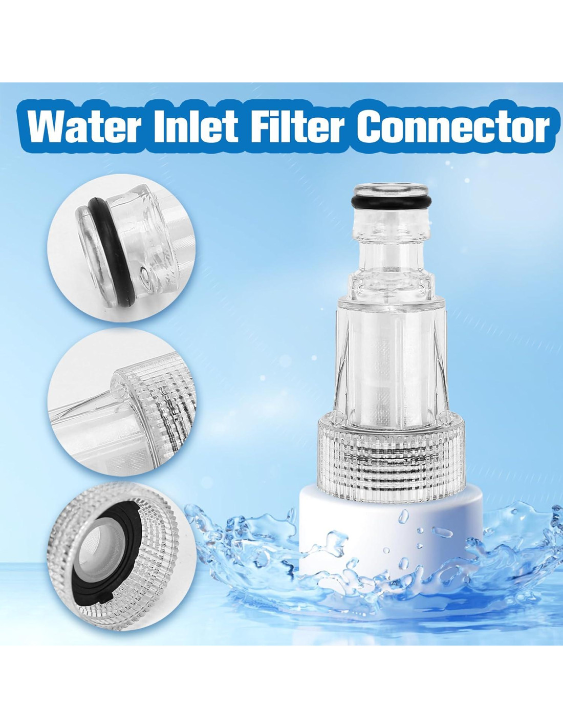 - [CÓMO USAR] - Este reemplazo de filtro de entrada de agua transparente requiere un adaptador para un uso adecuado. Simplemente conecta el conector del filtro a la lavadora a presión, adjunta el otro lado al adaptador de entrada del filtro de la manguera de jardín y luego conecta el adaptador a la manguera de agua. (Nota: El paquete incluye solo el filtro, adaptador no incluido.)