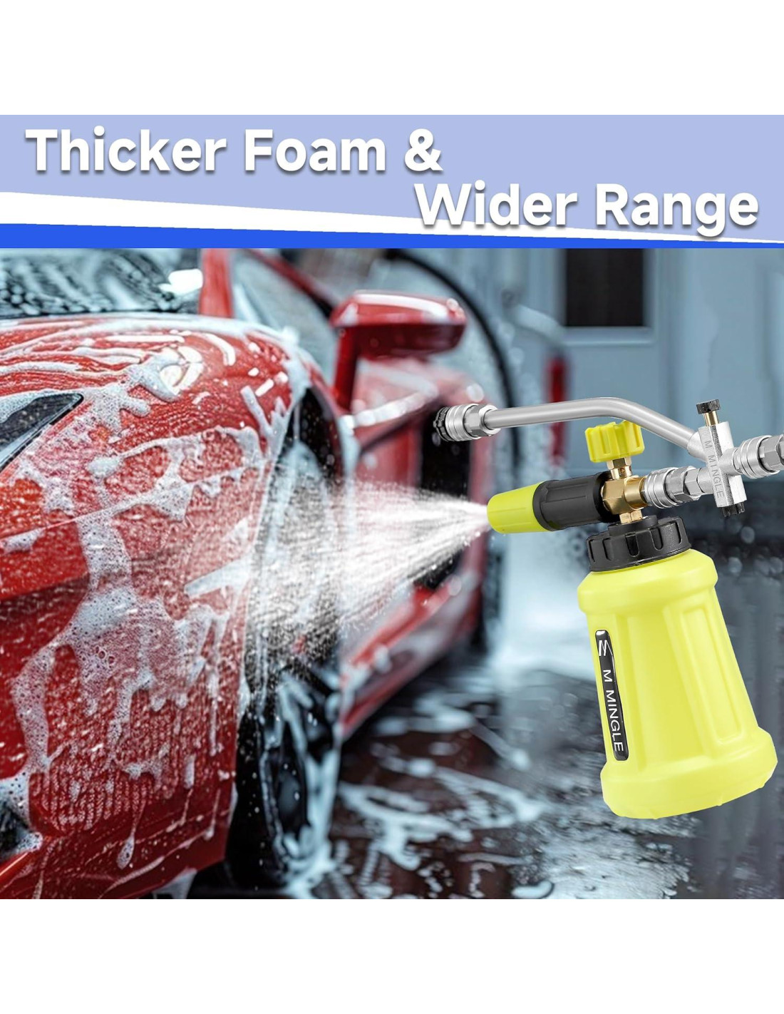 - Kit Profesional de Cañón de Espuma: Incluye blaster de espuma, conector doble y 5 puntas de boquilla. Ideal para diversas tareas de limpieza como lavado de vehículos y pisos, exteriores de casas. Un kit satisface todos tus requisitos de limpieza.