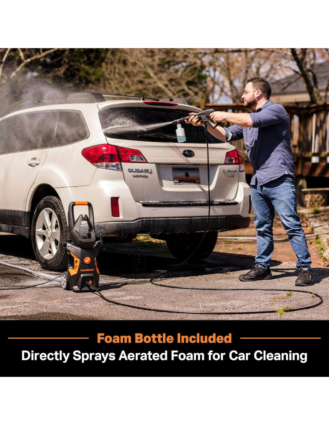 - INCLUYE: Lavadora a presión eléctrica, pistola rociadora, manguera de 20 pies (6.1 metros), conector de manguera de jardín, botella de espuma de 13.5 oz (0.4 litros), limpiador de boquillas