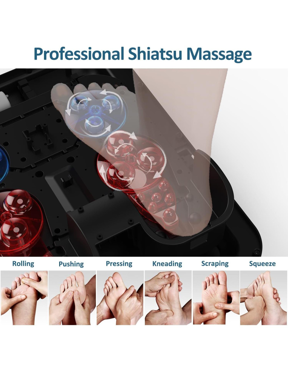 - Disfruta de un masaje shiatsu profesional con Mountrax. Está equipada con dos cabezales rodantes independientes con múltiples cabezales de masaje ergonómicos pequeños para masajear más áreas de tu pie para un masaje shiatsu mejorado. La compresión de aire de cobertura total te permite experimentar un amasado profundo y compresión. Te permite relajarte completamente después de un día ajetreado y aliviar los músculos cansados.