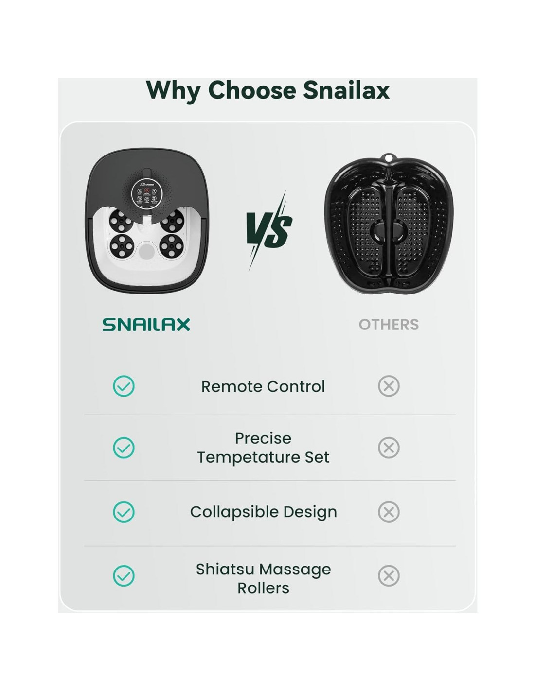- Elección de regalo perfecta: El masajeador de pies Snailax con calor es un regalo considerado para el Día de la Madre, el Día del Padre, el Día de Acción de Gracias. La tina de remojo para pies Snailax es un regalo perfecto para tus amigos y familiares.