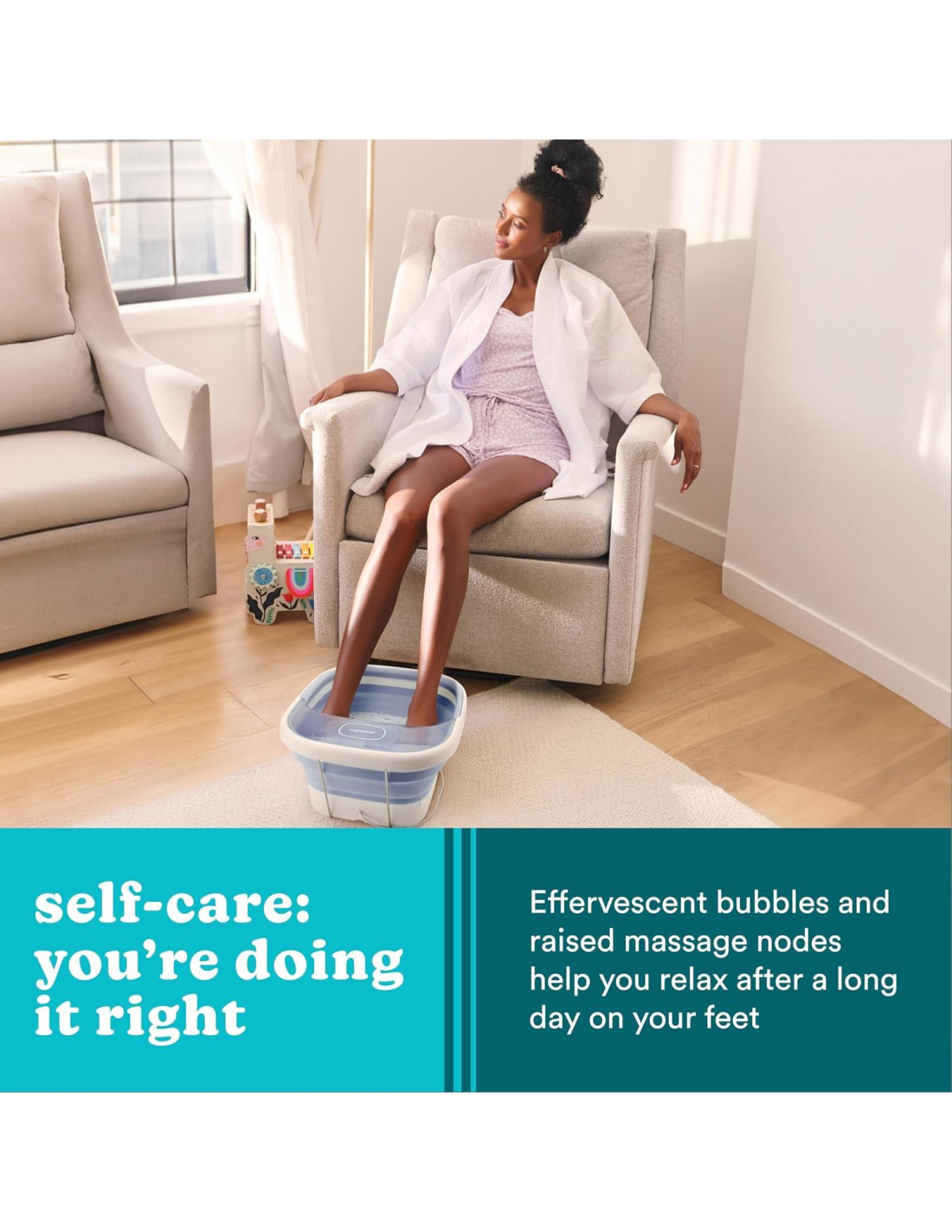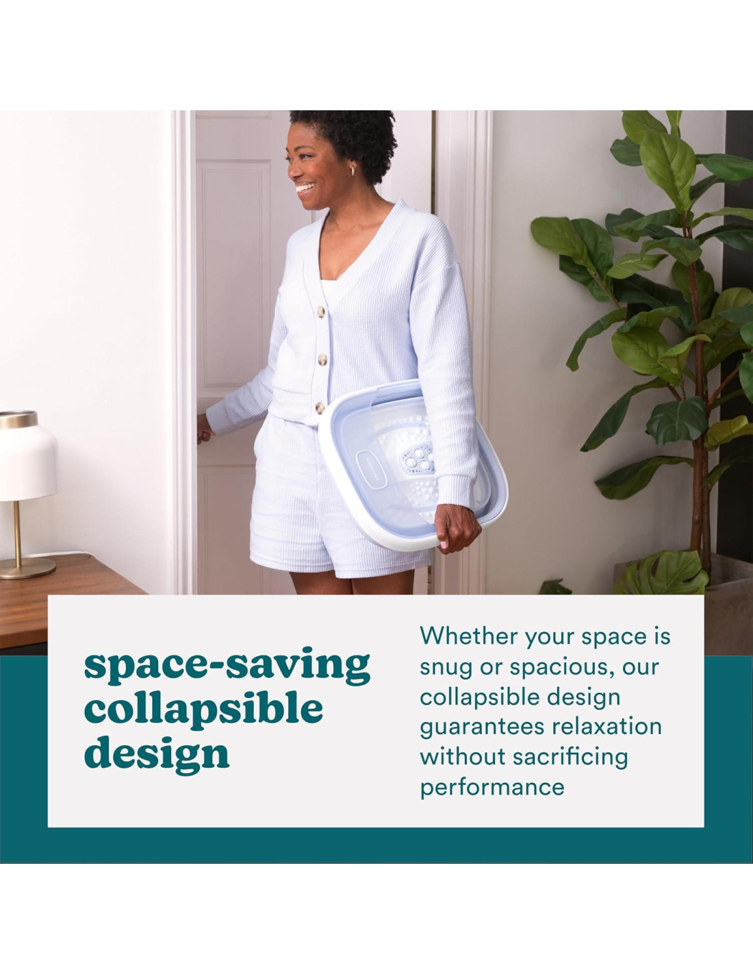 - Qué hay en la Caja: (1) Baño de Pies Homedics Smart Space Essentials, (2) Paquetes de Sales de Baño, (1) Garantía de 2 Años