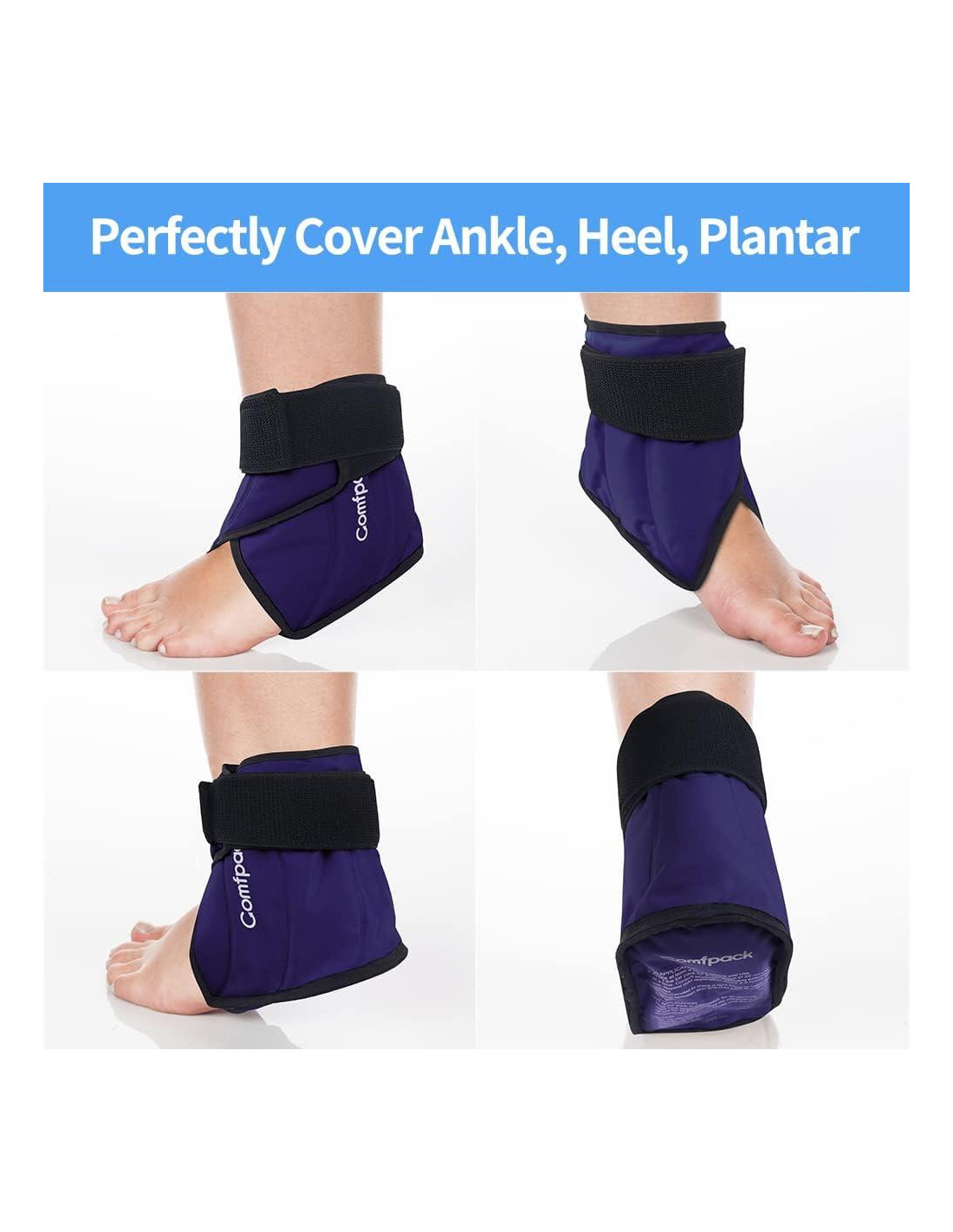 - Alivio Dirigido para el Talón, Tobillo y Dolor Plantar - La funda de hielo para el talón Comfpack está diseñada ergonómicamente para proporcionar alivio dirigido para el talón, tobillo y plantar. Ideal para aliviar el dolor de esguinces, distensiones, tendinitis de Aquiles, dolor en el pie, fascitis plantar, espolón del talón, y también puede ayudar a acelerar la recuperación postoperatoria y de lesiones.
