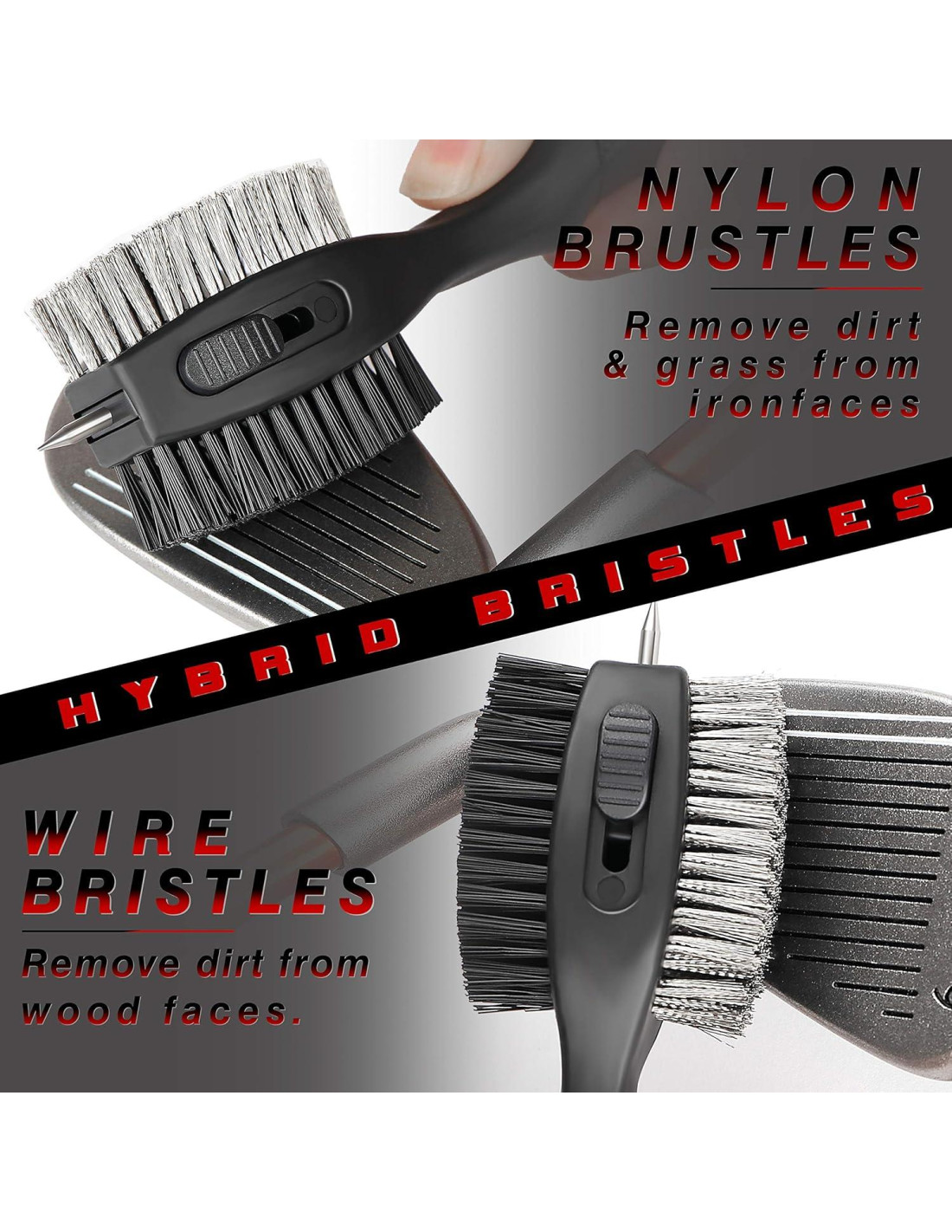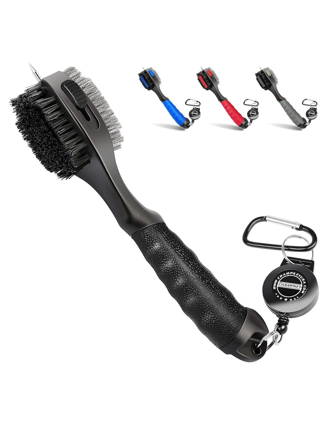 - Cabezal de cepillo sobredimensionado: El área de las cerdas de nylon y alambre del cepillo champkey es significativamente más grande que la de un cepillo de golf regular, lo que significa que puede proporcionar una limpieza más potente y una larga vida útil.