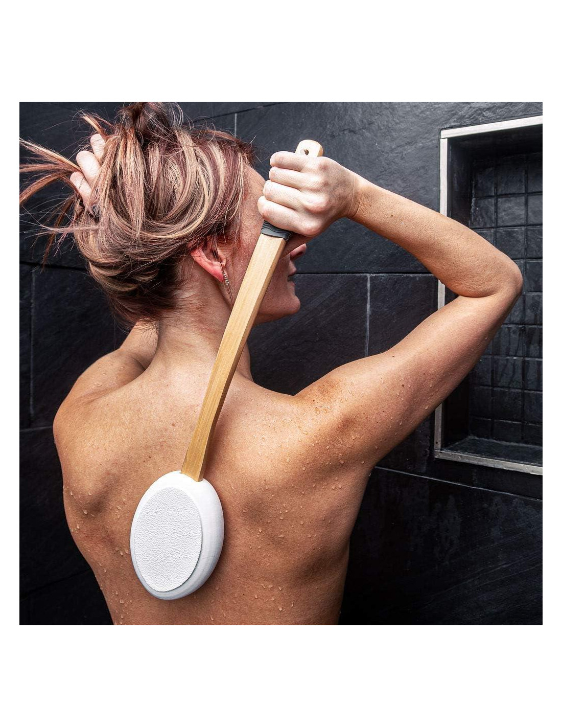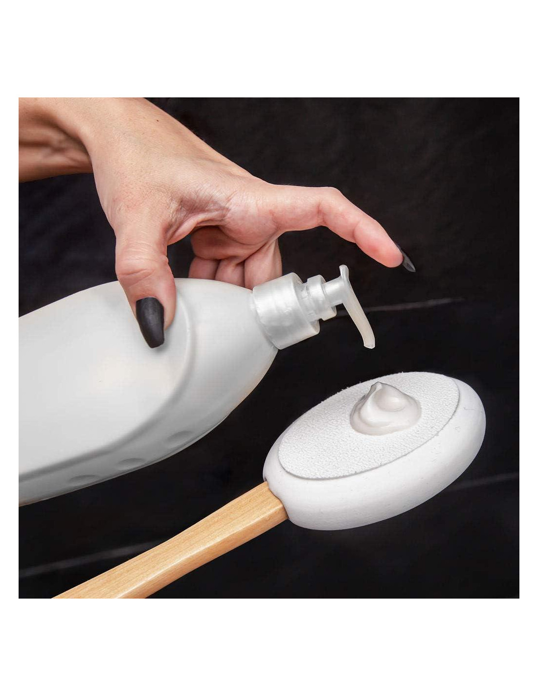 - ALCANCE EXTENDIDO Y MEJOR AGARRE - Nuestro aplicador de loción para la espalda de mango largo alcanza 43 cm (17") creando facilidad para tu espalda y pies. Más grosor en el mango crea un mejor agarre. El agarre de goma texturizada proporciona un agarre cómodo y seguro, antideslizante incluso cuando está mojado.