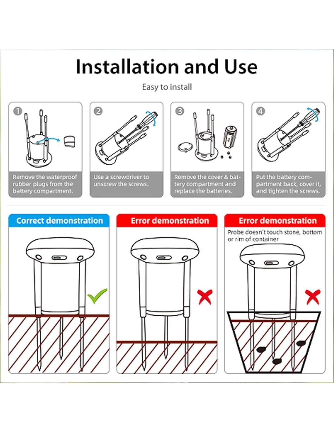 - Mediciones más precisas y rápidas Esta sonda de medidor de suelo utiliza la última Tecnología de Detección de Sensores de Suelo para detectar con precisión y rapidez la humedad y la temperatura de tu suelo. La nueva y mejorada tecnología te permite comprender mejor tu suelo y disfrutar de la siembra y la cosecha.