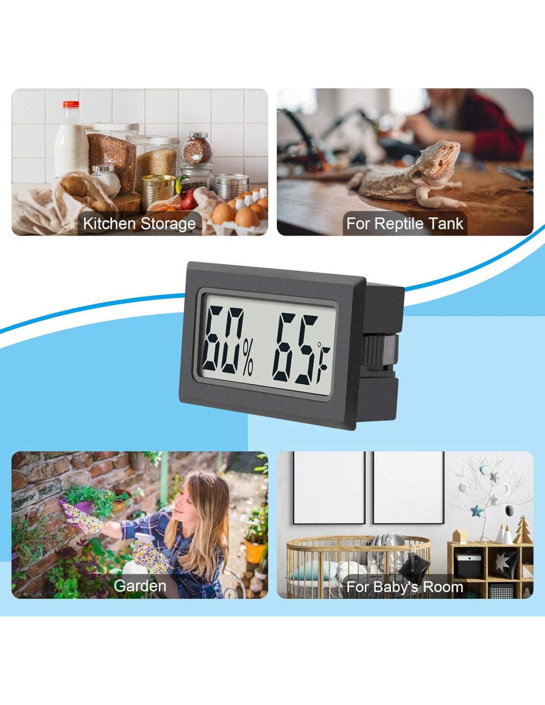 AikTryee es un fabricante profesional con 20 años de integración de diseño y producción de productos electrónicos. Tenemos una rica experiencia en diseño y producción de productos. Todos los productos son fabricados bajo un equipo de inspección de calidad profesional y responsable. Disfrutado por más de 20 millones de usuarios en todo el mundo, nuestra tecnología líder cambiará la forma de tu estilo de vida. Sensor de temperatura y humedad sensible con alta precisión hace que el higrómetro termómetro digital mini sea la opción óptima tanto para tu vida como para tu trabajo. Precisión y Rango: Precisión de medición de temperatura: +/-2C; Rango de medición de temperatura -50C-70C; Precisión de medición de humedad: +/-2%RH; Rango de medición de humedad 10%-99%RH.