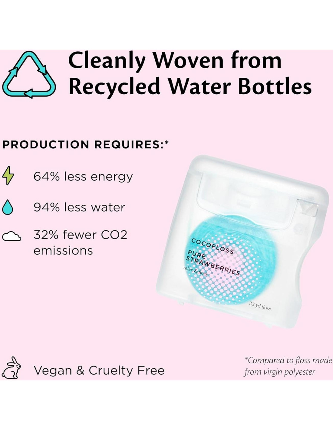 - AMIGABLE CON EL PLANETA Y LIBRE DE CRUELDAD: Limpiamente hilado de aproximadamente el 85% de botellas de agua recicladas; dispensador recargable; menos desperdicio que los palillos y hilos plásticos; libre de parabenos y sulfatos; sin sabores irritantes; certificado libre de crueldad por Leaping Bunny.