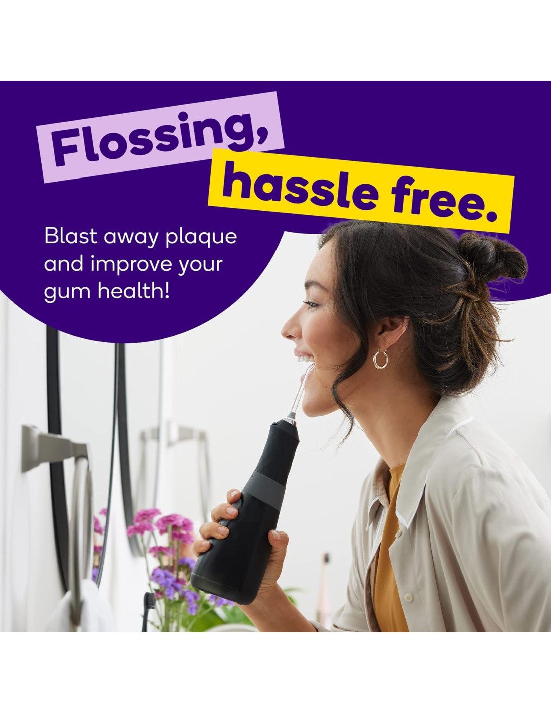 - Diseño completamente resistente al agua y tanque fácilmente recargable hace que nuestro hilo dental sea fácil de usar en la ducha.