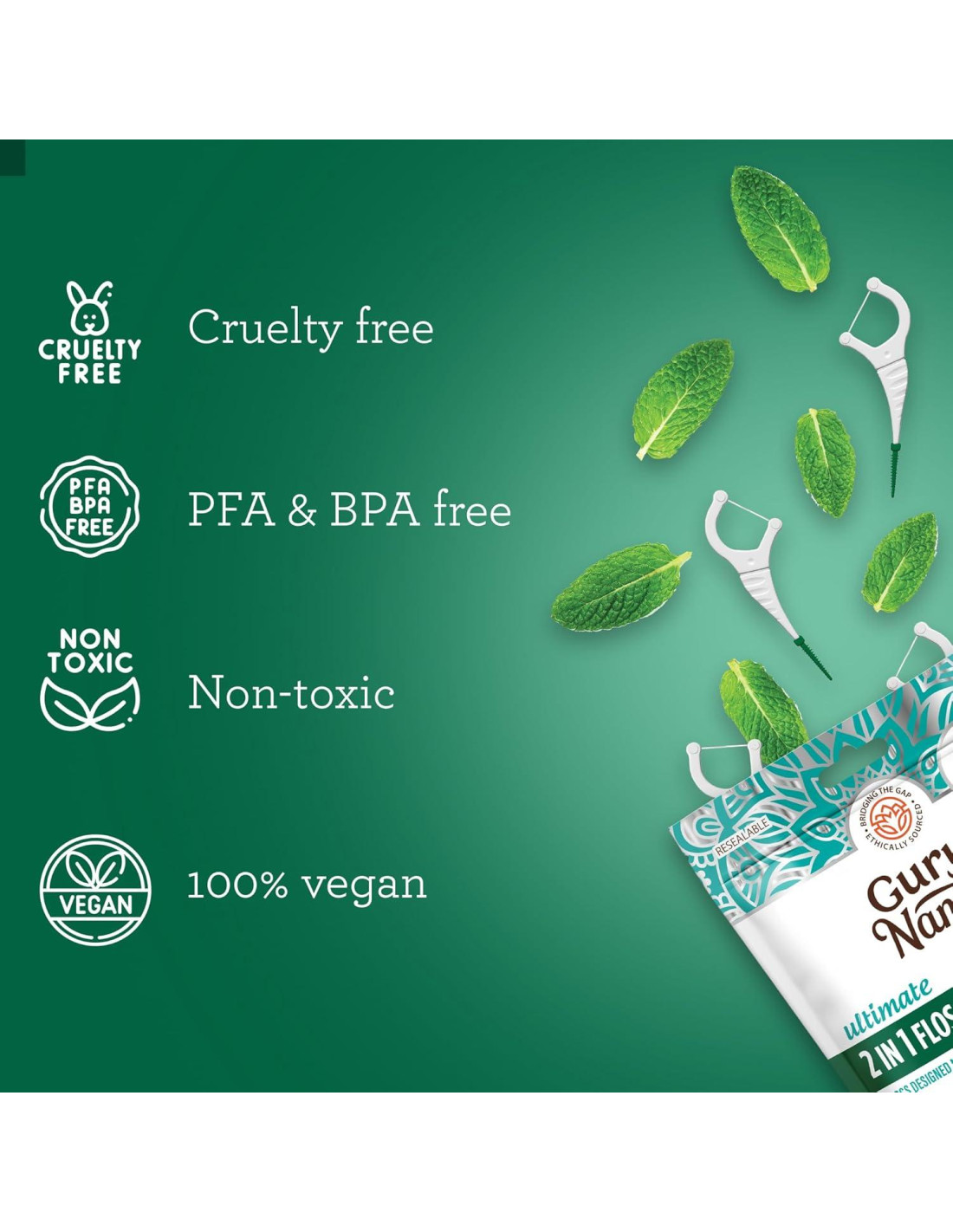- SIN DESHILACHADO: Los Palillos de Hilo Dental GuruNanda 2 en 1 están diseñados para proporcionar una experiencia de hilo sin interrupciones, ya que son resistentes a deshilacharse y no se rompen a mitad de camino, asegurando una limpieza completa cada vez. Elaborados con plástico de alta calidad, libre de crueldad, nuestros palillos de hilo dental también son libres de PFA y BPA, y no tóxicos, lo que los convierte en una opción confiable y segura para sus necesidades de cuidado oral.