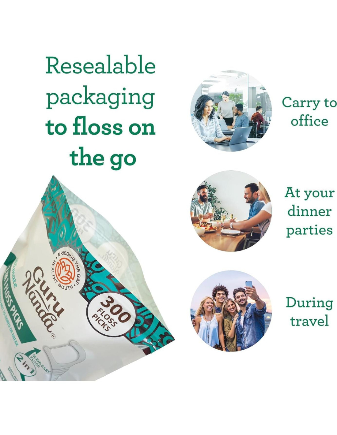 - DESLIZAMIENTO EN MOVIMIENTO: Obtenga 300 palillos de hilo en un solo paquete de nuestros Palillos de Hilo Dental GuruNanda 2 en 1. Con un mango antideslizante, estos palillos de hilo están perfectamente diseñados para usarse en cualquier momento y lugar. Su diseño flexible y fácil de usar permite un deslizamiento suave entre los dientes, sin causar incomodidad.