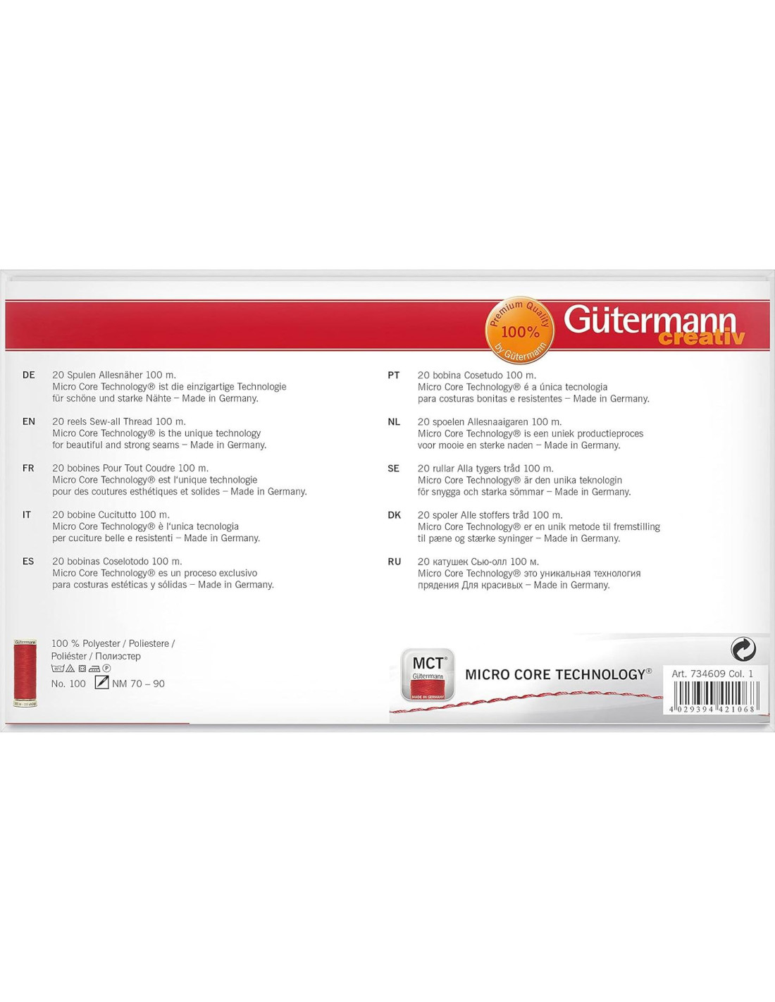 20 carretes de hilo Sew-all de 100m en los colores básicos más populares es el conjunto completo para todos los que disfrutan coser