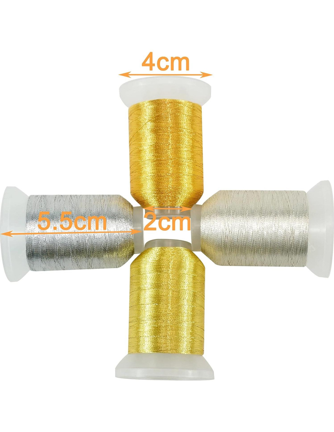 - 4 COLORES DORADOS Y PLATEADOS BRILLANTES Y RESPLANDECIENTES - El brillo y el resplandor del hilo metálico de bordar traerán efectos fantásticos a todos tus proyectos de bordado, lo que hará que tu diseño sea muy Noble y Real. Los hilos metálicos se utilizan mucho en el bordado de emblemas y uniformes, así como en bordados decorativos y ornamentales en ropa elegante.