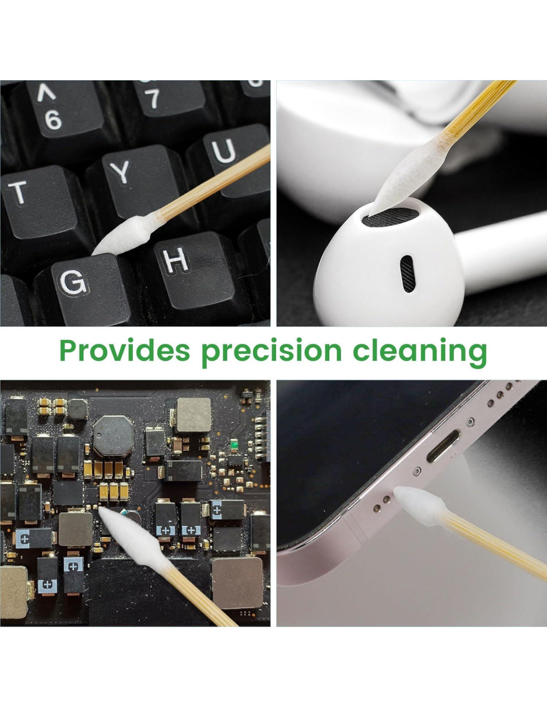 - Amplia aplicación: los hisopos de limpieza puntiagudos pueden ser efectivos para limpiar áreas de difícil acceso en dispositivos electrónicos, como eliminar polvo o escombros de pequeñas hendiduras, puertos o conectores, y otras tareas que requieren trabajo intrincado