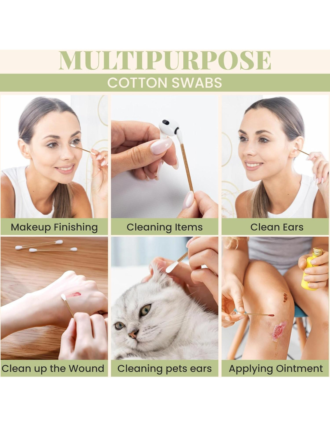 - TÚ OBTIENES HISOPOS VERSÁTILES para CADA NECESIDAD! Estos hisopos de algodón de bambú más grandes de lo habitual están diseñados para más que solo el cuidado de los oídos. Su tamaño y construcción resistente los hacen perfectos para aplicar maquillaje, limpiar lugares de difícil acceso, manejar artículos delicados, artes y manualidades, y mucho más. Empacados convenientemente en una hermosa caja de papel Kraft ecológica, son amigables para viajar y un imprescindible para cualquier hogar. ¡Obtienes la mezcla perfecta de funcionalidad y sostenibilidad con cada uso!